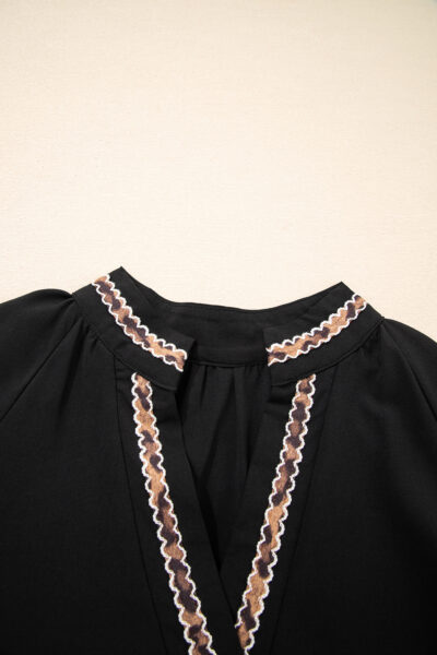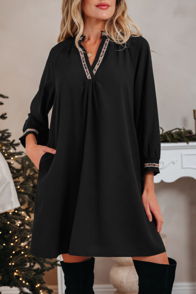 Black Contrast Trim V Neck Bracelet Sleeve Shift Mini Dress