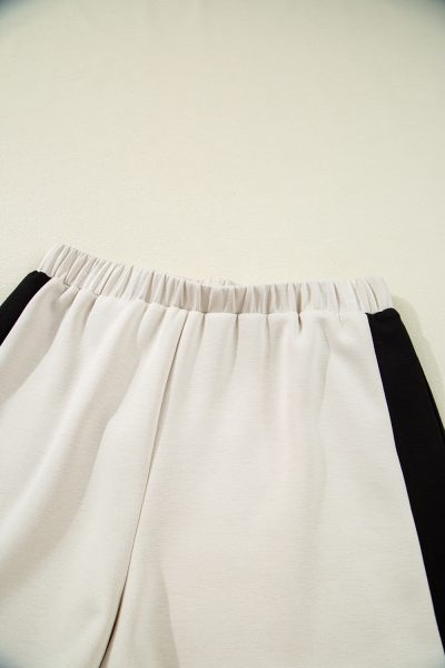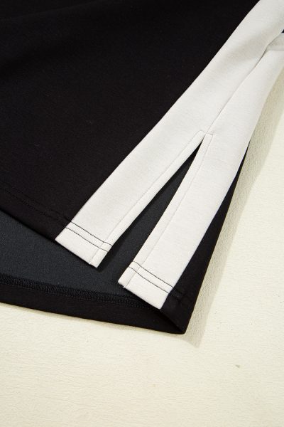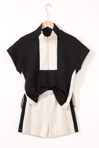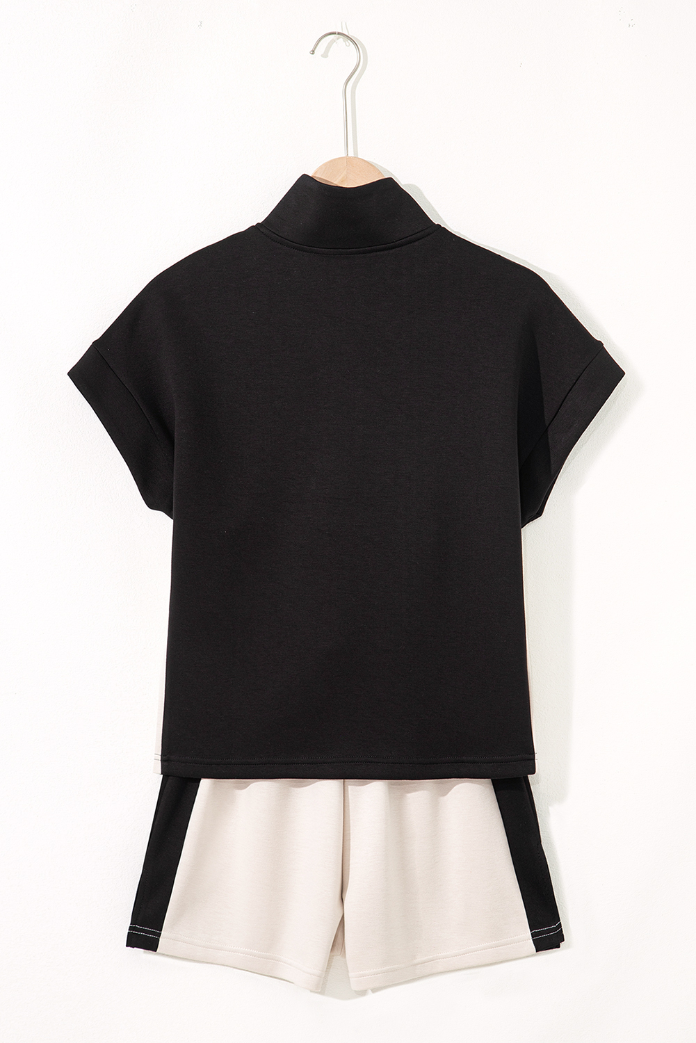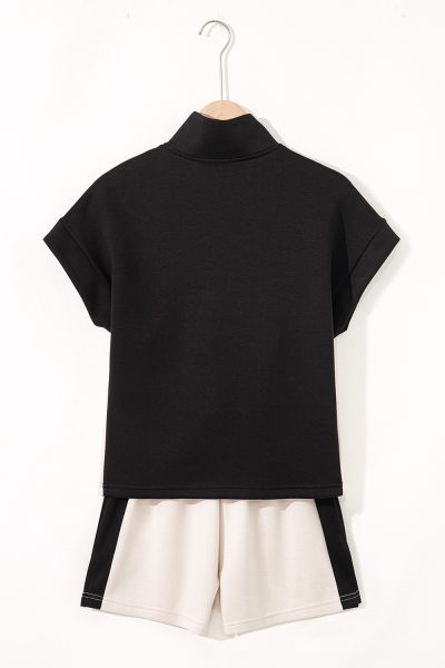 Black Contrast Zipped Stand Collared T Shirt and Short Set