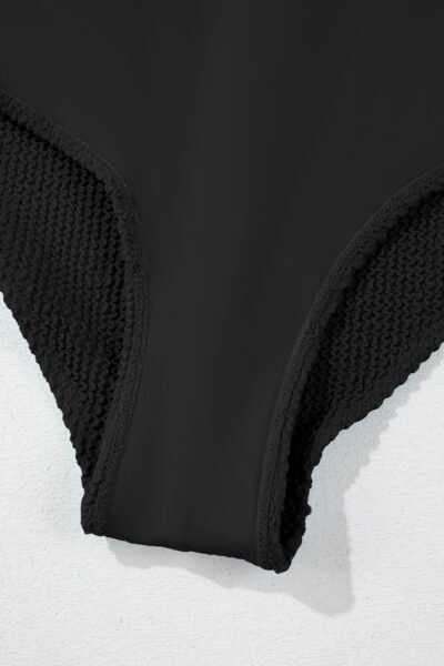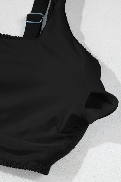 Black Corded Solid Square Neck Bikini Swimsuit