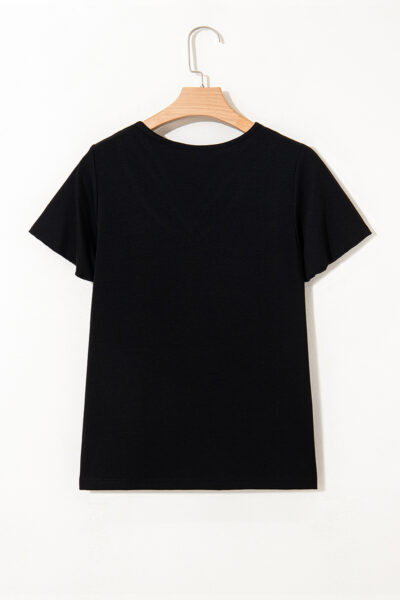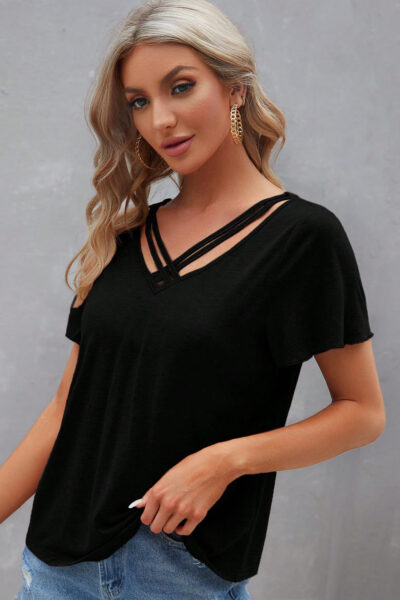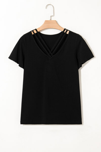 Black Crisscross V Neck Butterfly Sleeve T Shirt