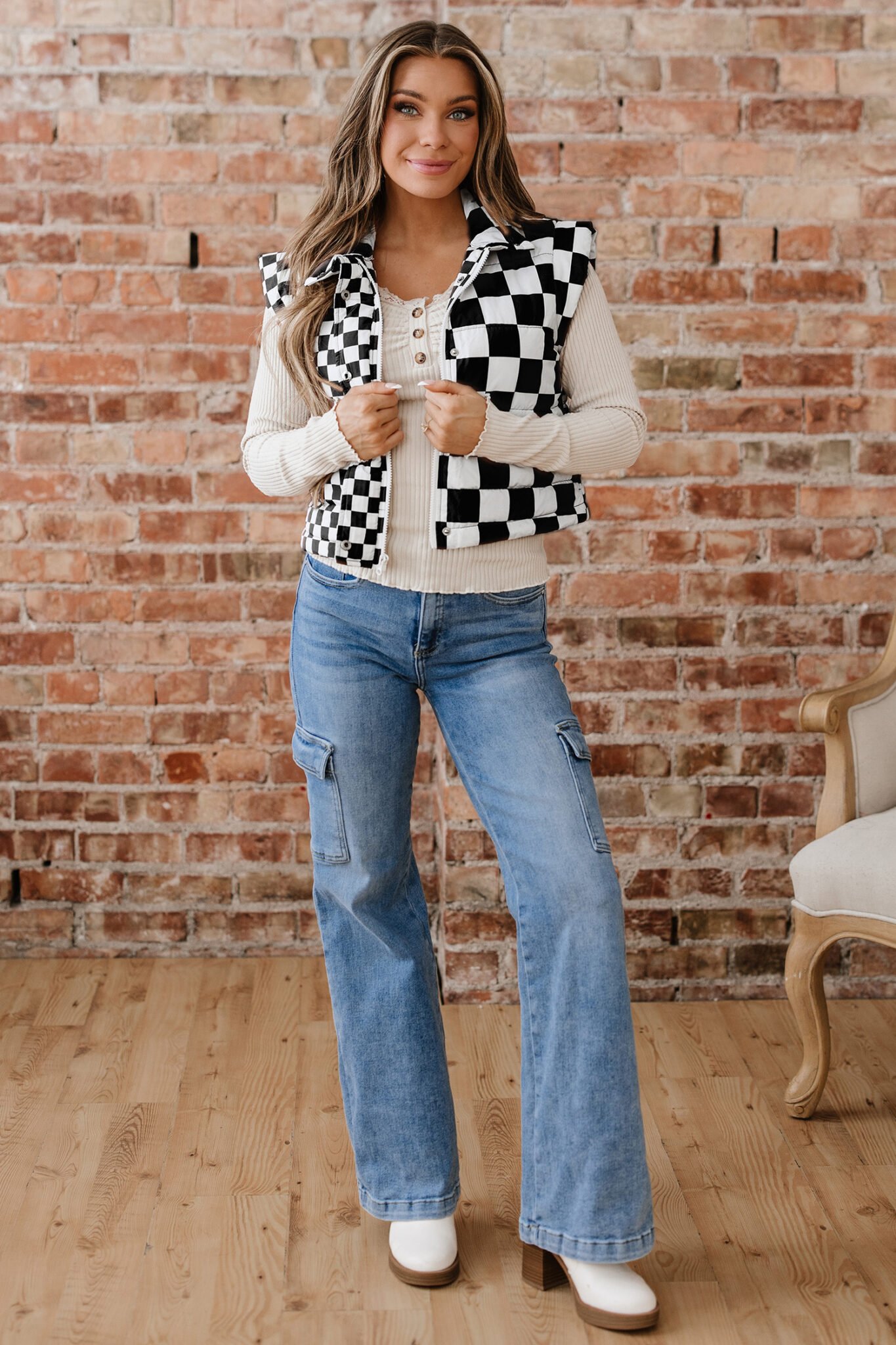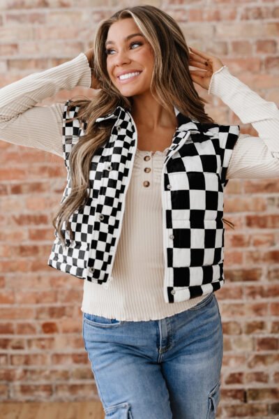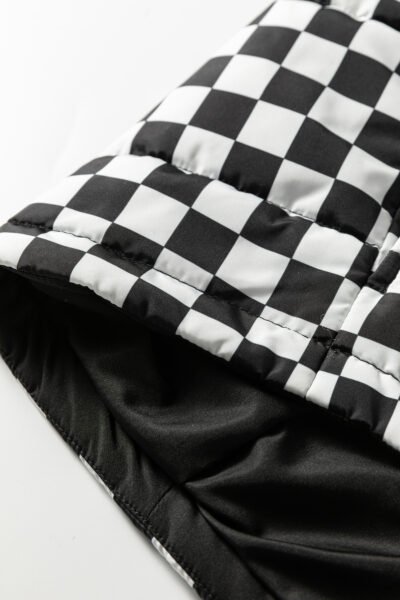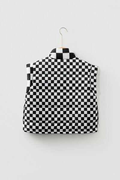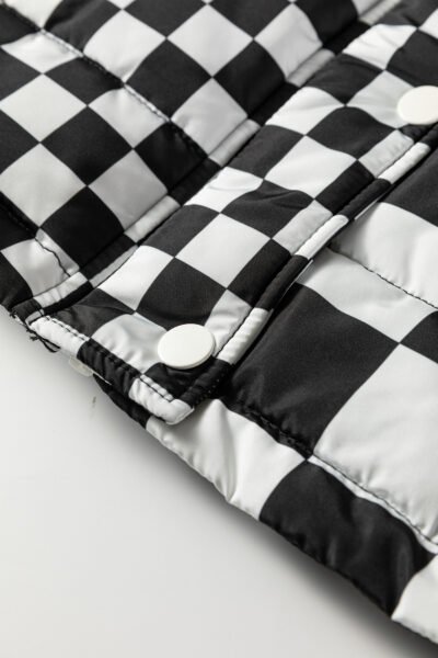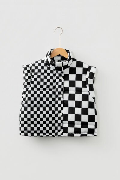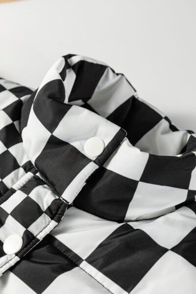 Black Double Checked Stand Collar Cropped Puffer Vest