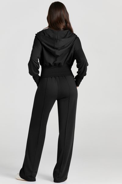 Black Double Zipper Hooded Jacket and Sweatpants Active Set