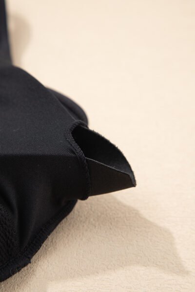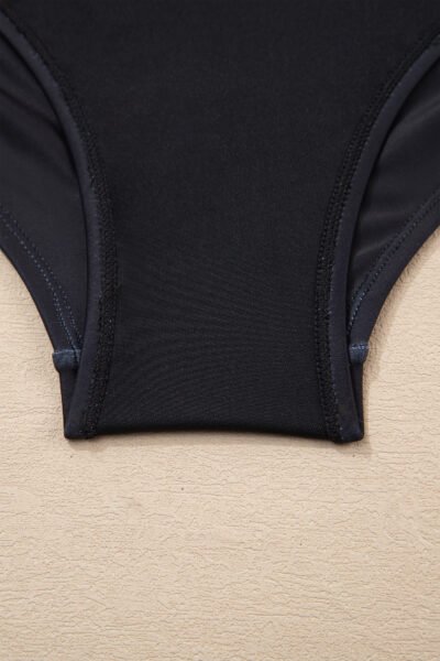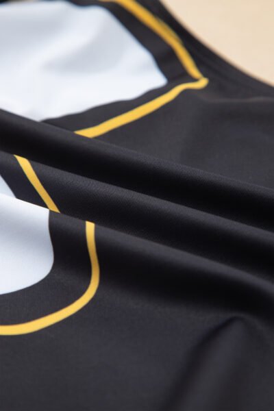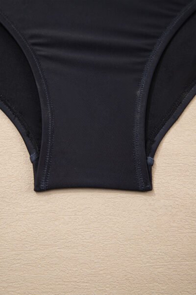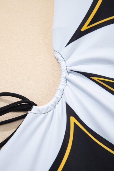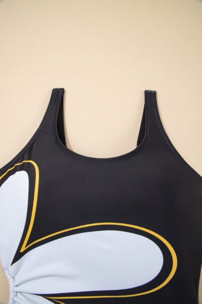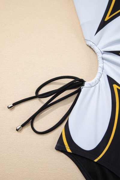 Black Drawstring Big Hole Floral Print Sleeveless One Piece Swimsuit