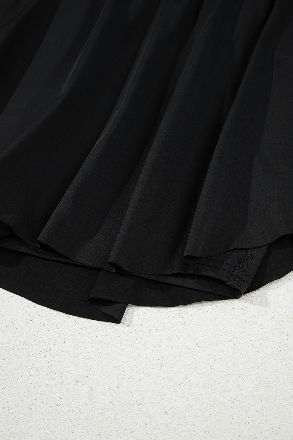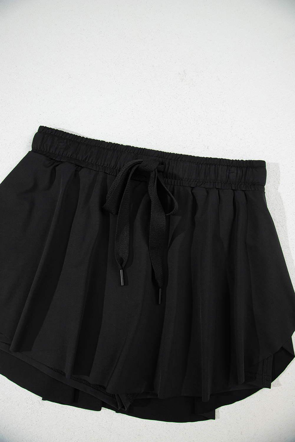 Black Drawstring Elastic Waistband Lined Tennis Skorts