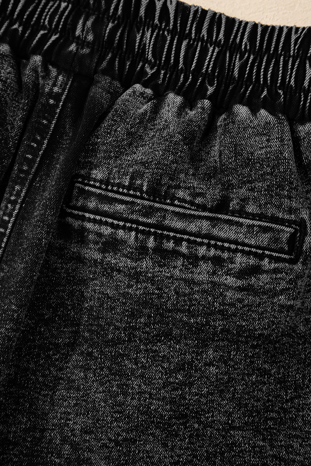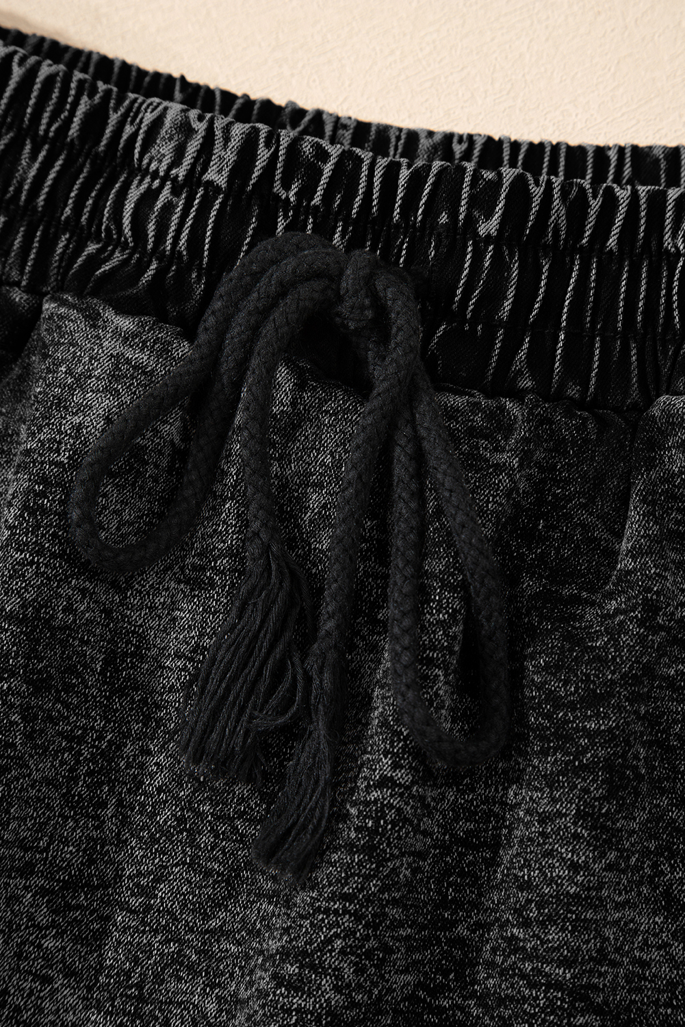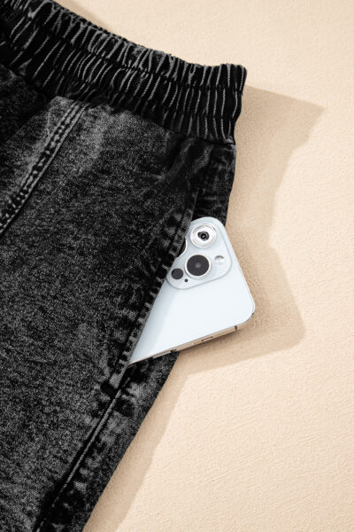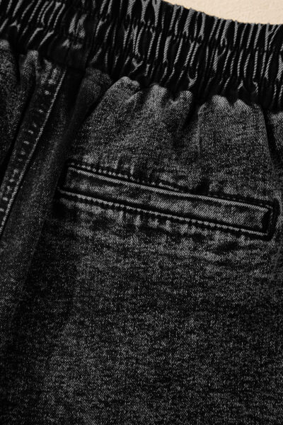 Black Drawstring Elastic Waistband Pocketed Denim Shorts