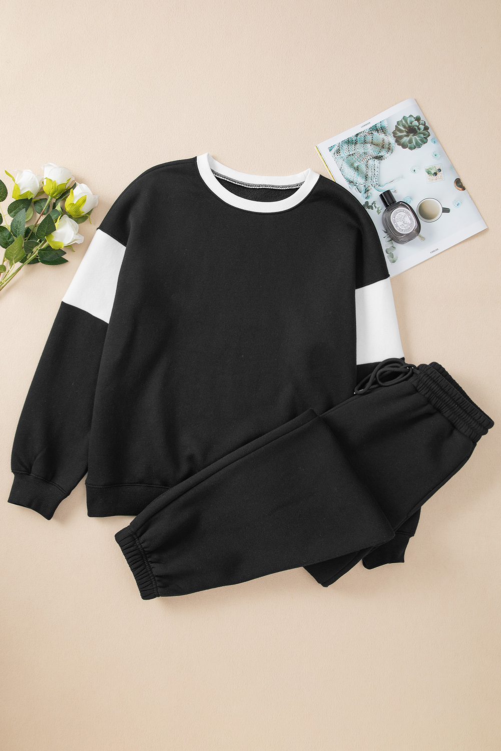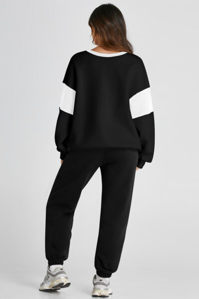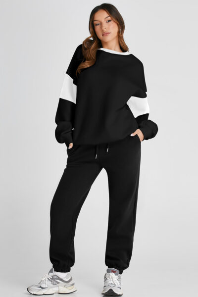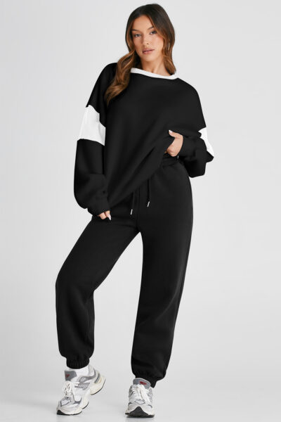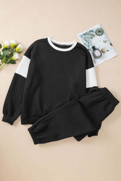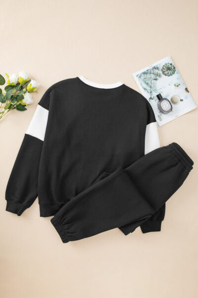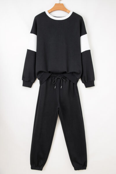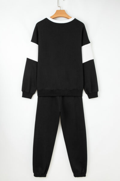 Black Drop Shoulder Loose Sweatshirt and Joggers Active Set