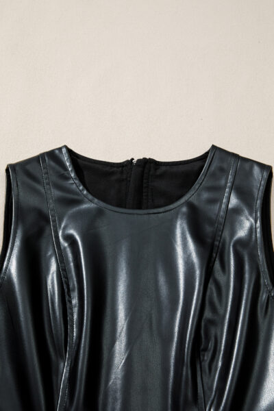 Black Faux Leather Ruffle Hem Sleeveless Mini Dress