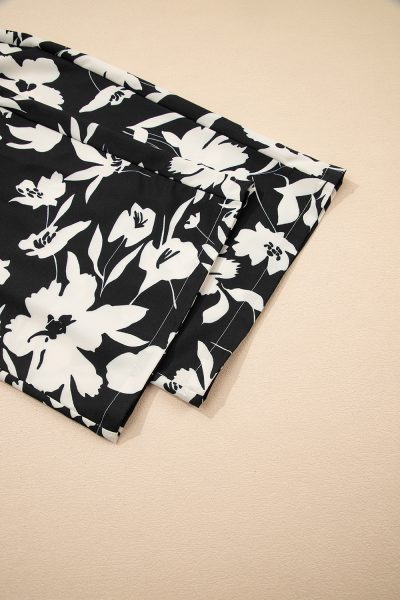 Black Floral Print Smocked High Waist Wide Leg Pants