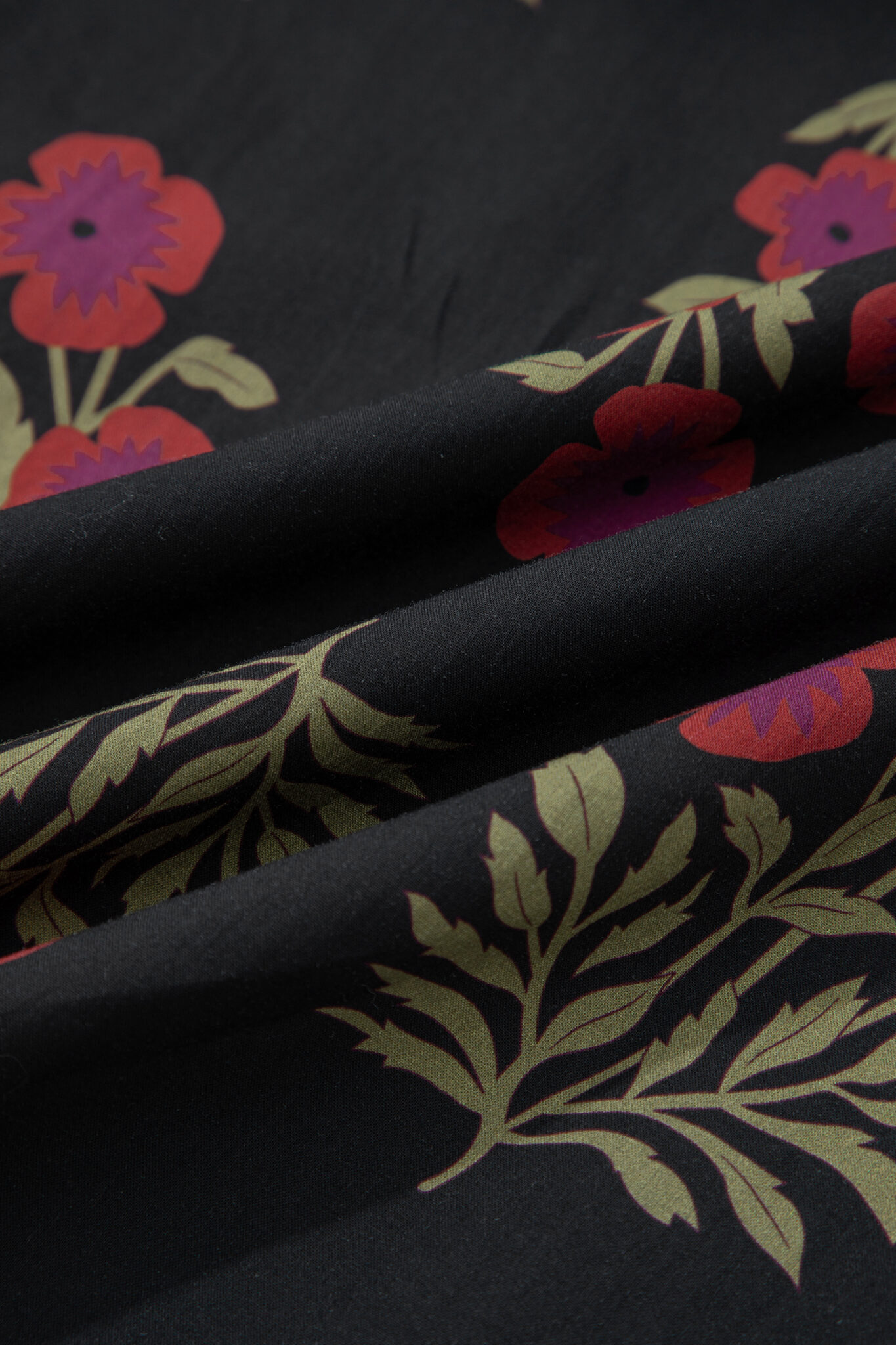 Black Floral Short Bubble Sleeve Tiered Maxi Dress