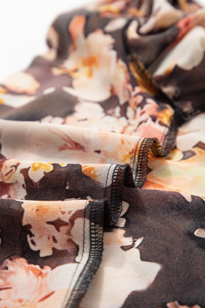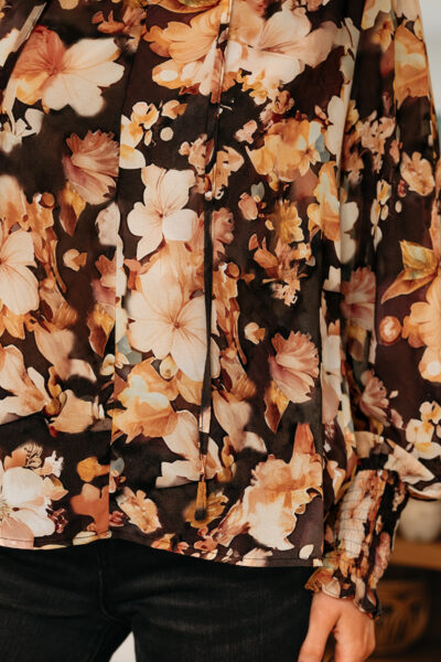 Black Floral V Neck Long Puff Sleeve Breezy Blouse