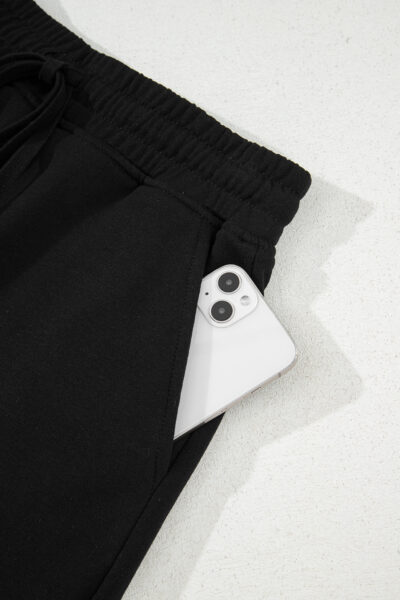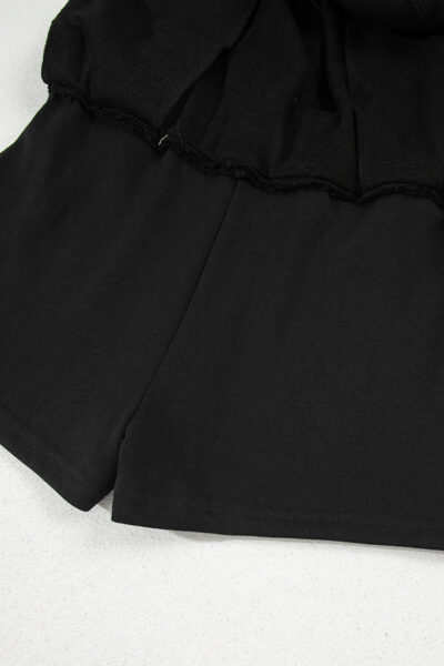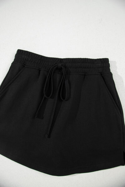 Black French Terry Drawstring Elastic Waistband Mini Skort with Pockets