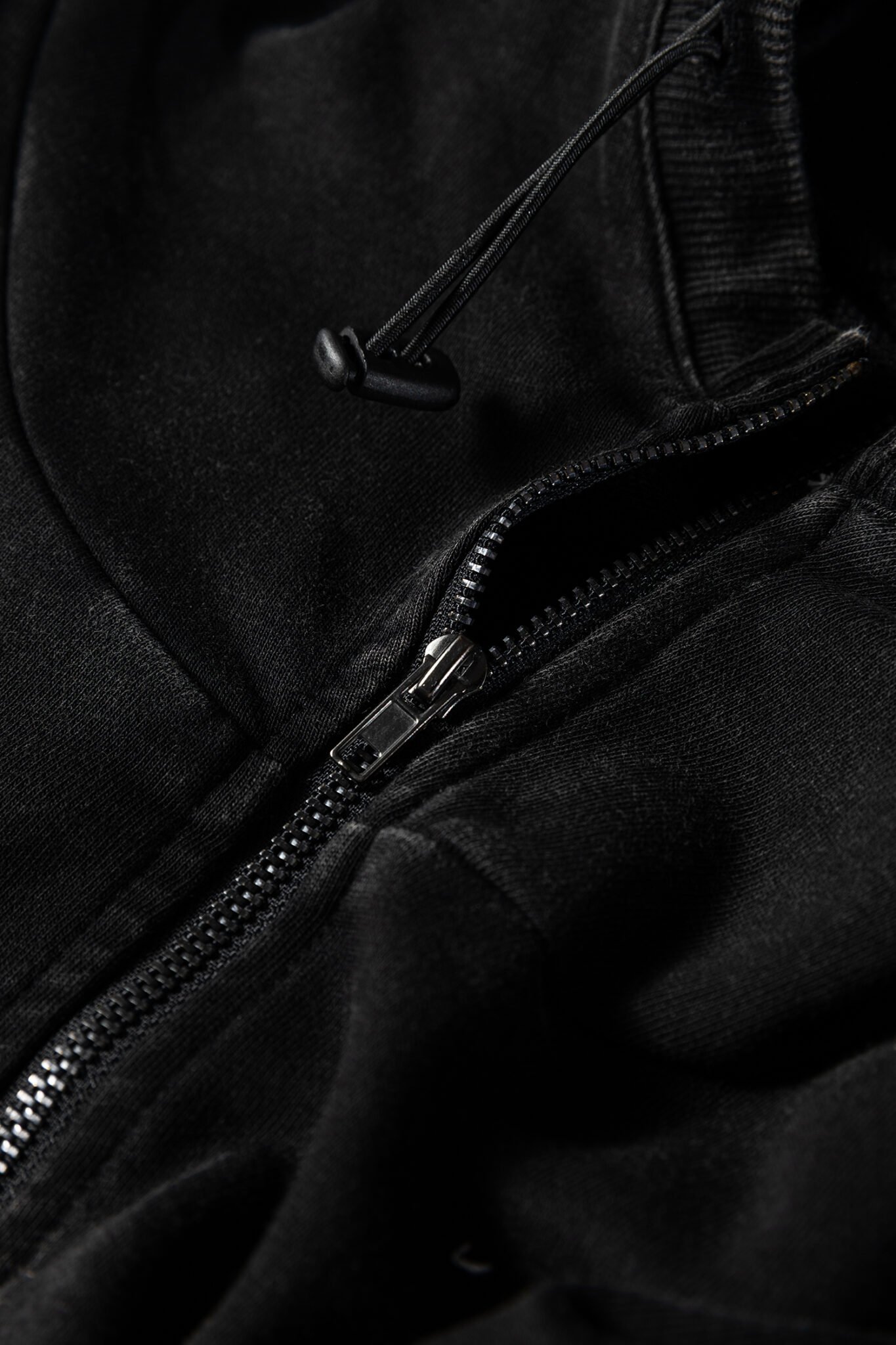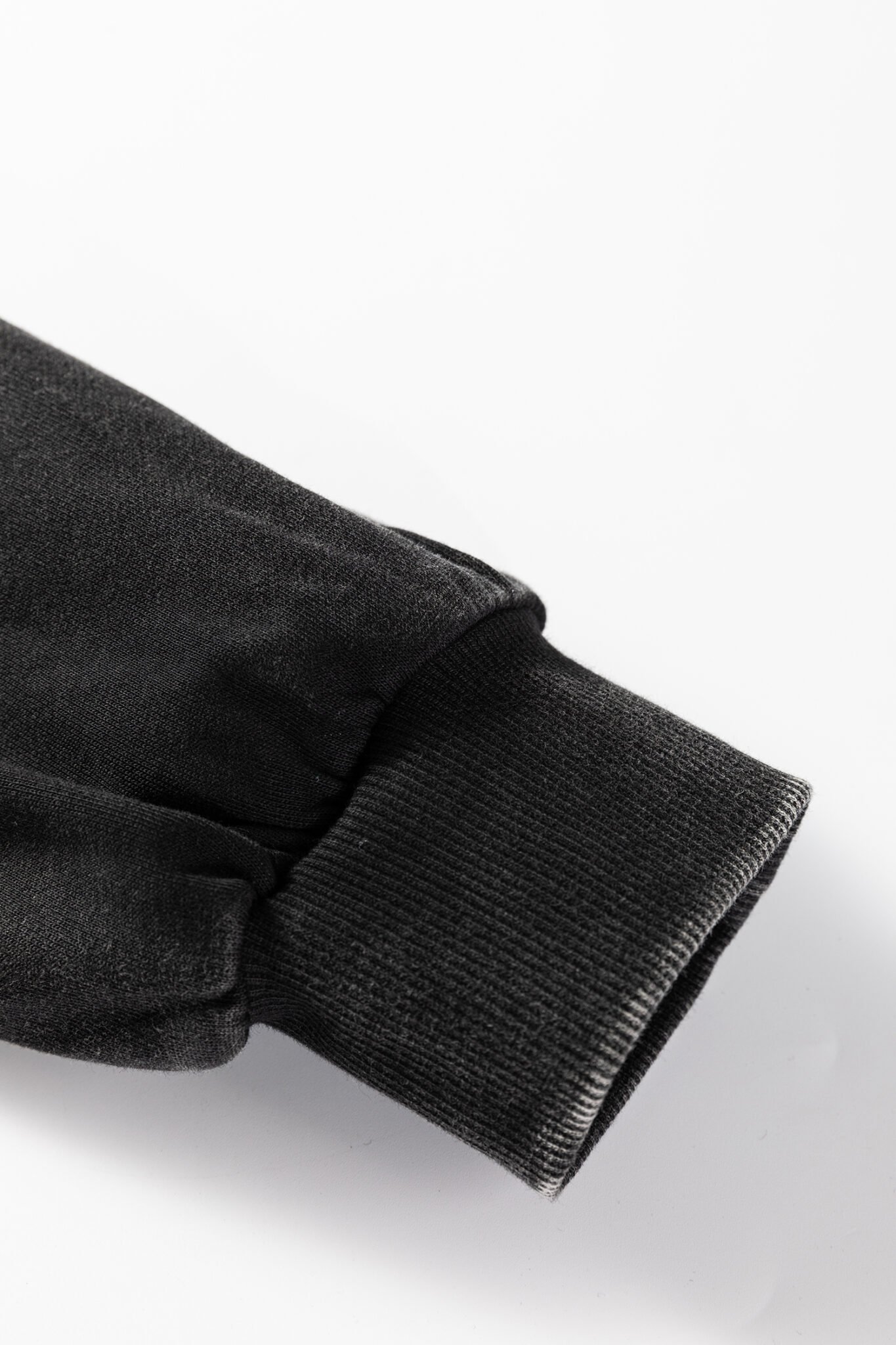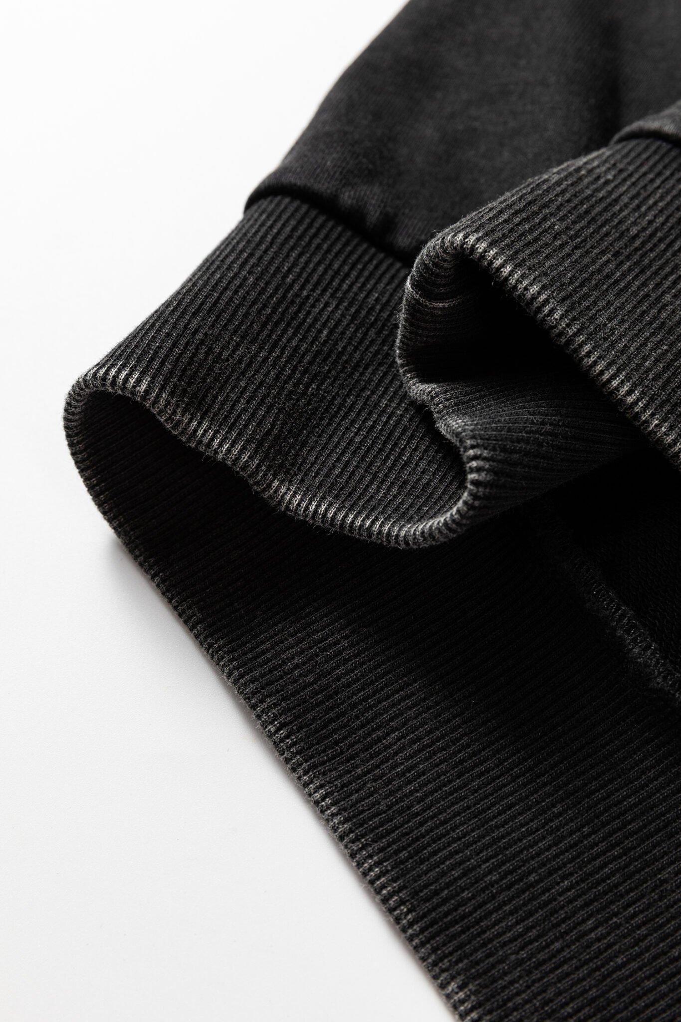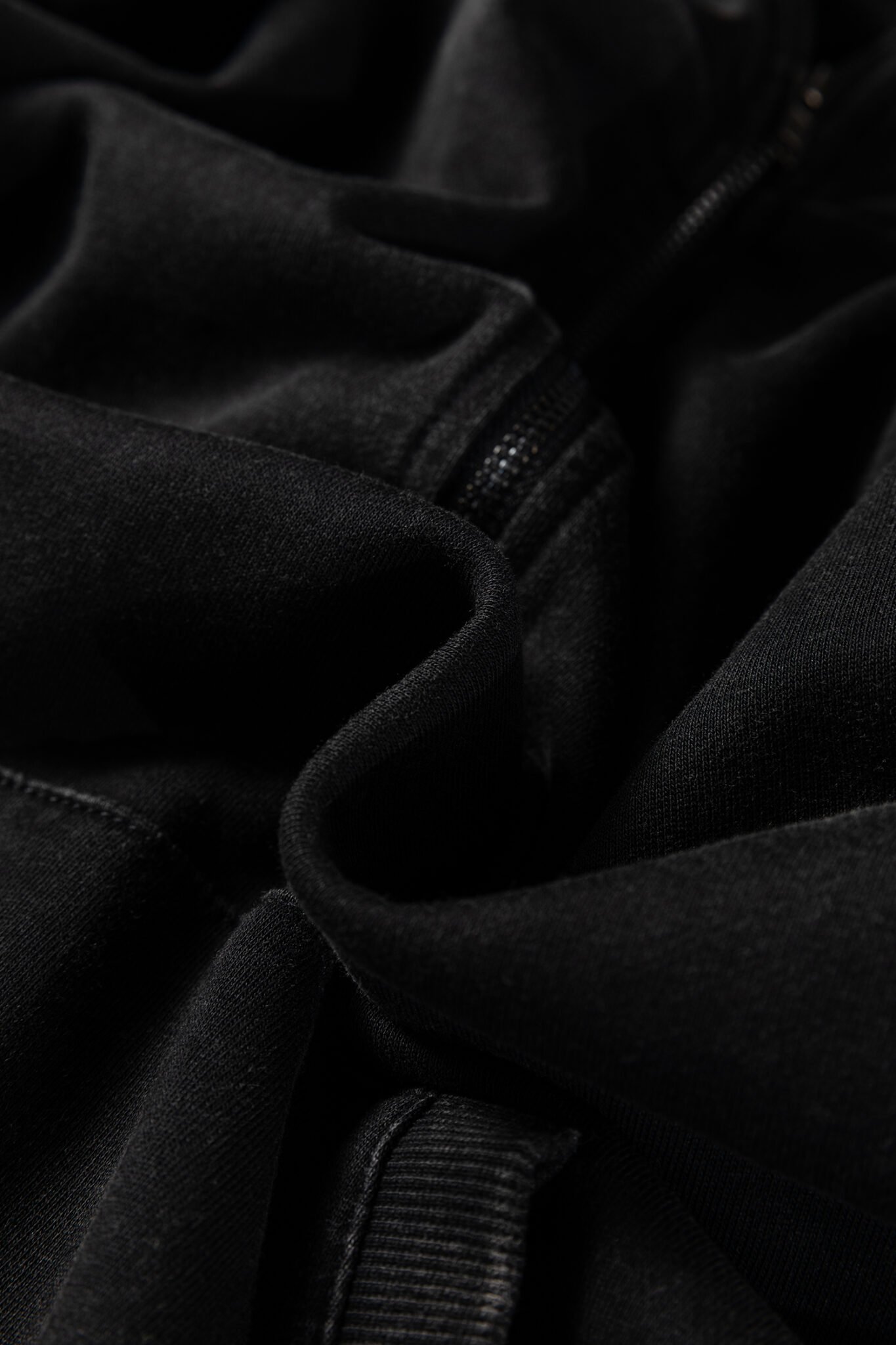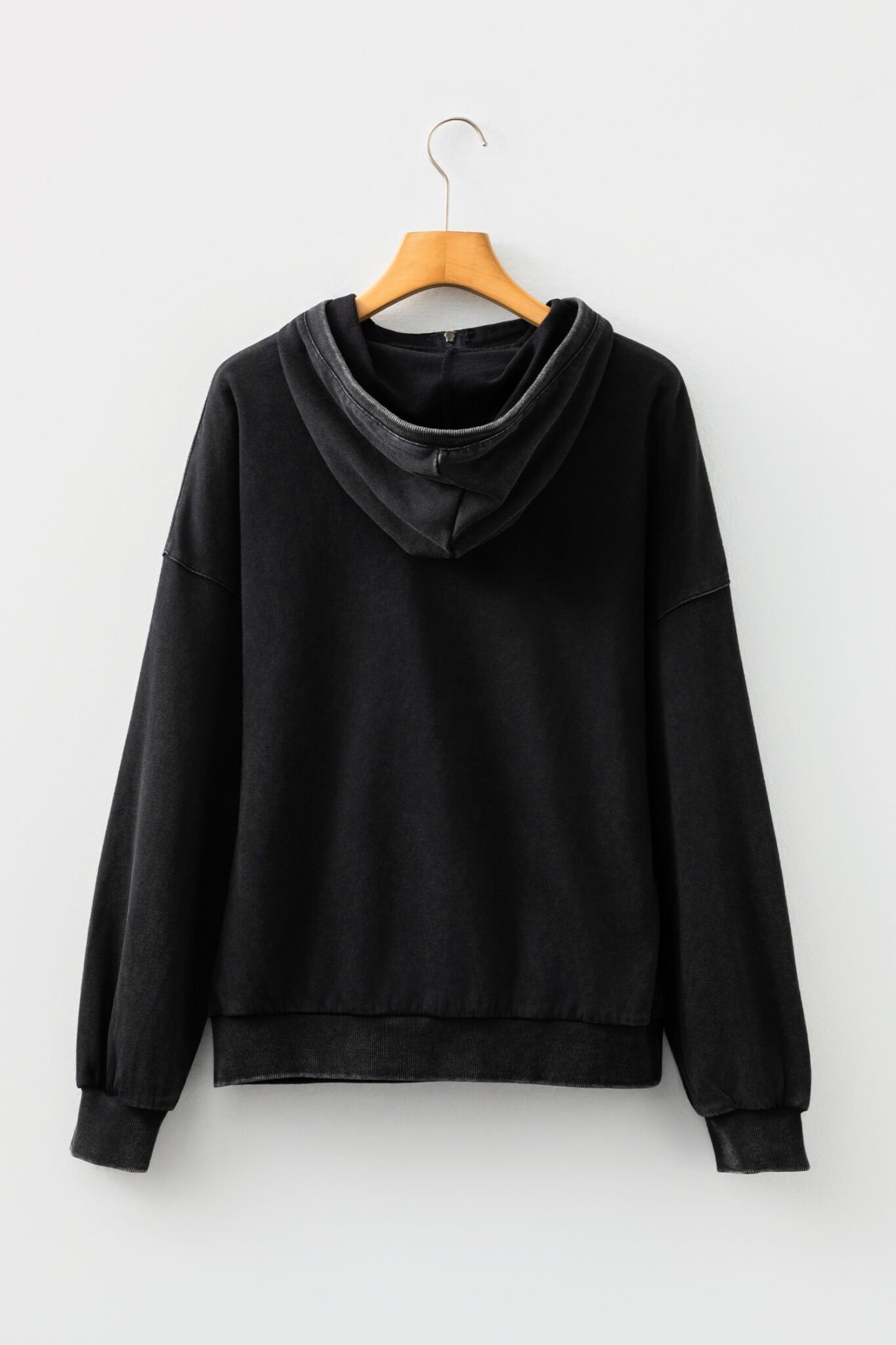 Black Half Zip Kangaroo Pocket Mineral Wash Baggy Hoodie