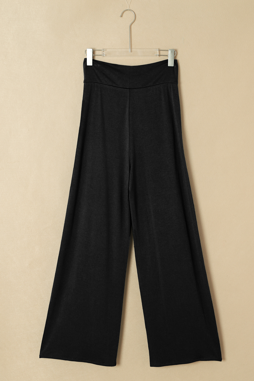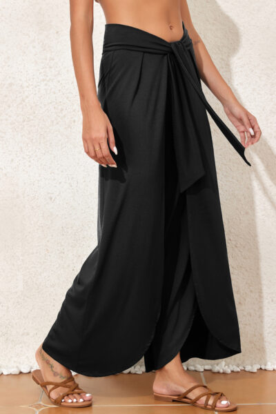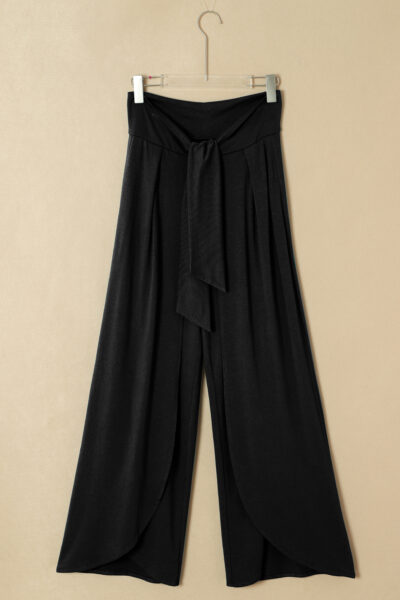 Black Knotted Drop Waist Split Leg Relaxed Pants
