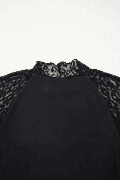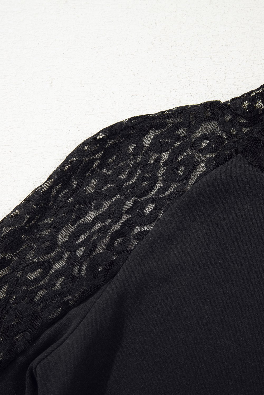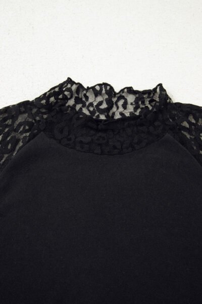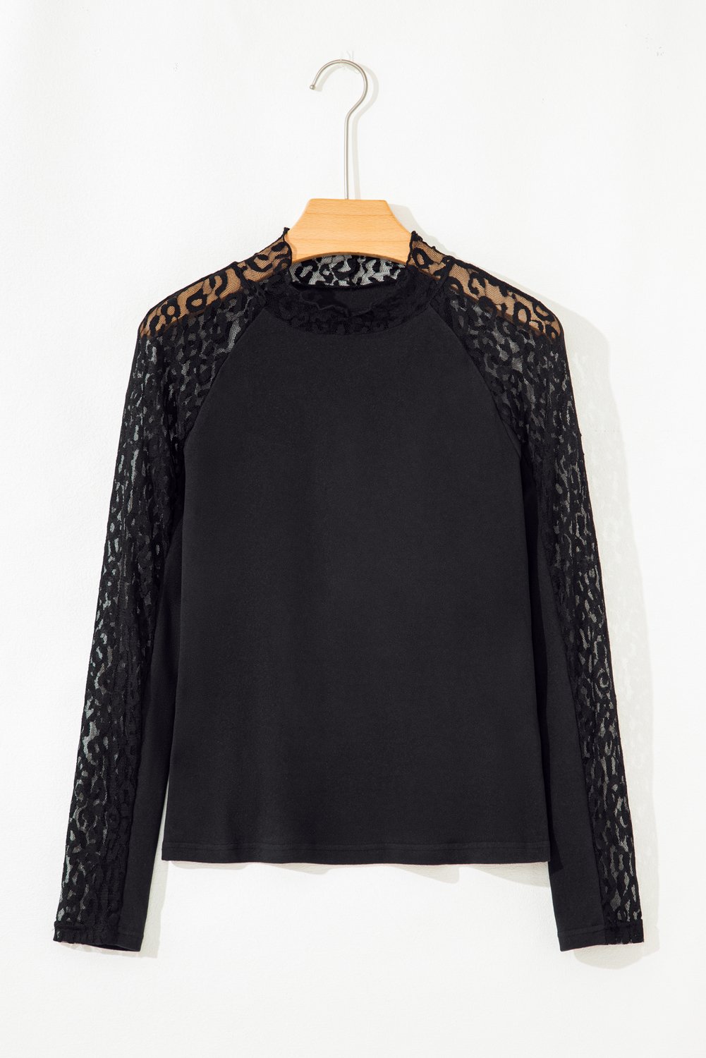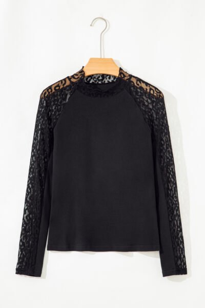 Black Leopard Mesh Patchwork Knit Long Sleeve Top