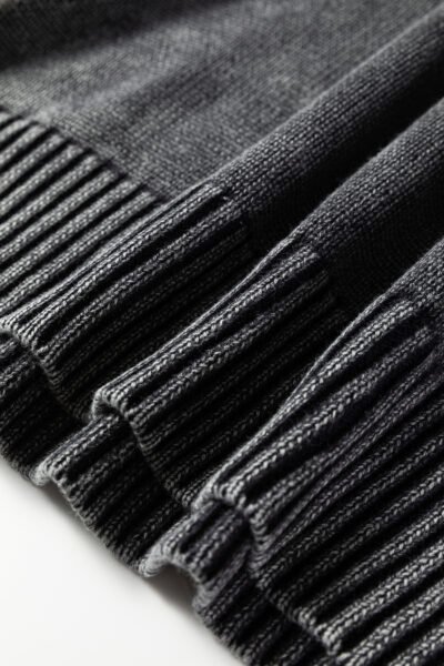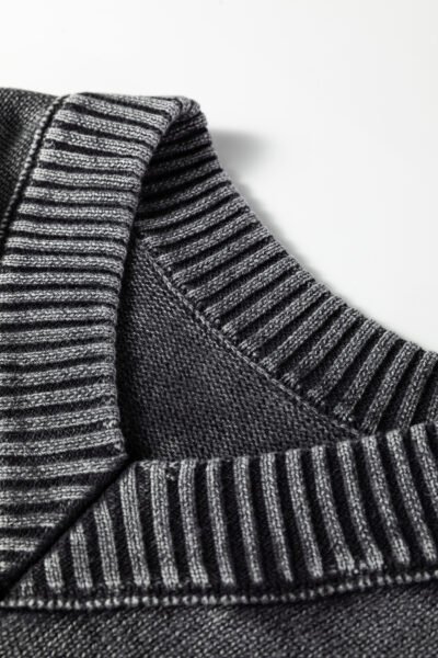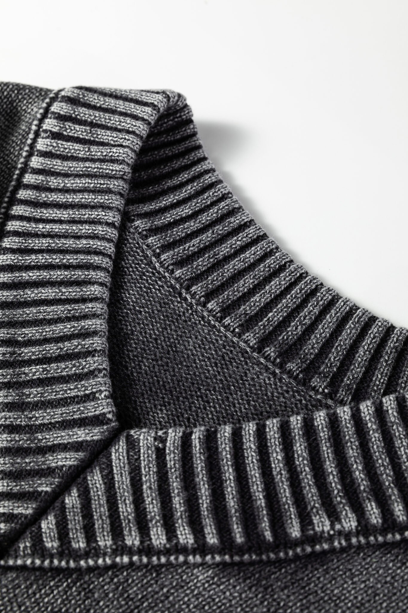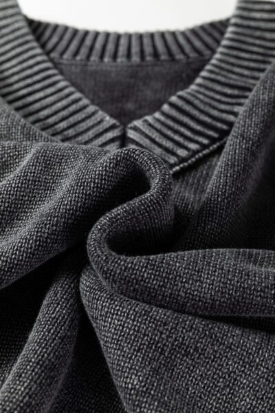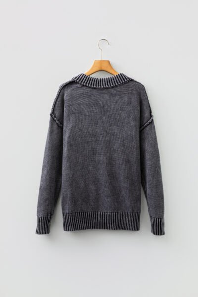 Black Mineral Wash V Neck Knit Exposed Seam Drop Shoulder Loose Sweater