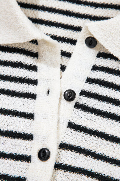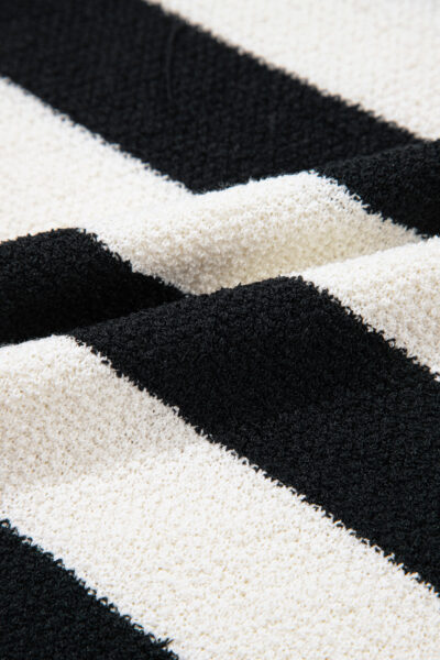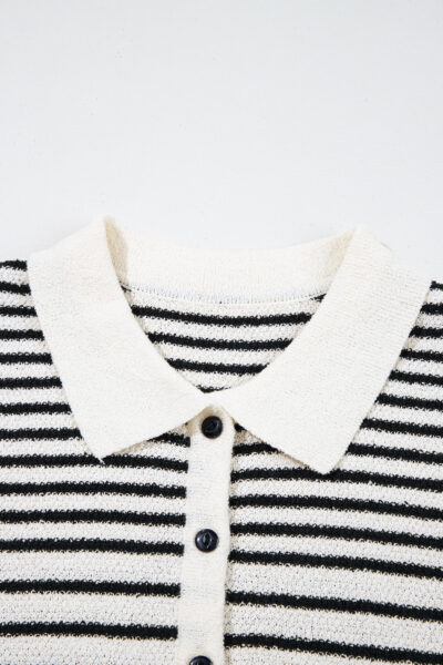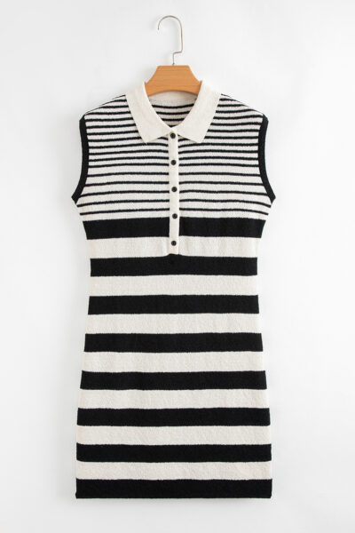 Black Mixed Striped Print Half Placket Collared Cap Sleeve Bodycon Sweater Dress