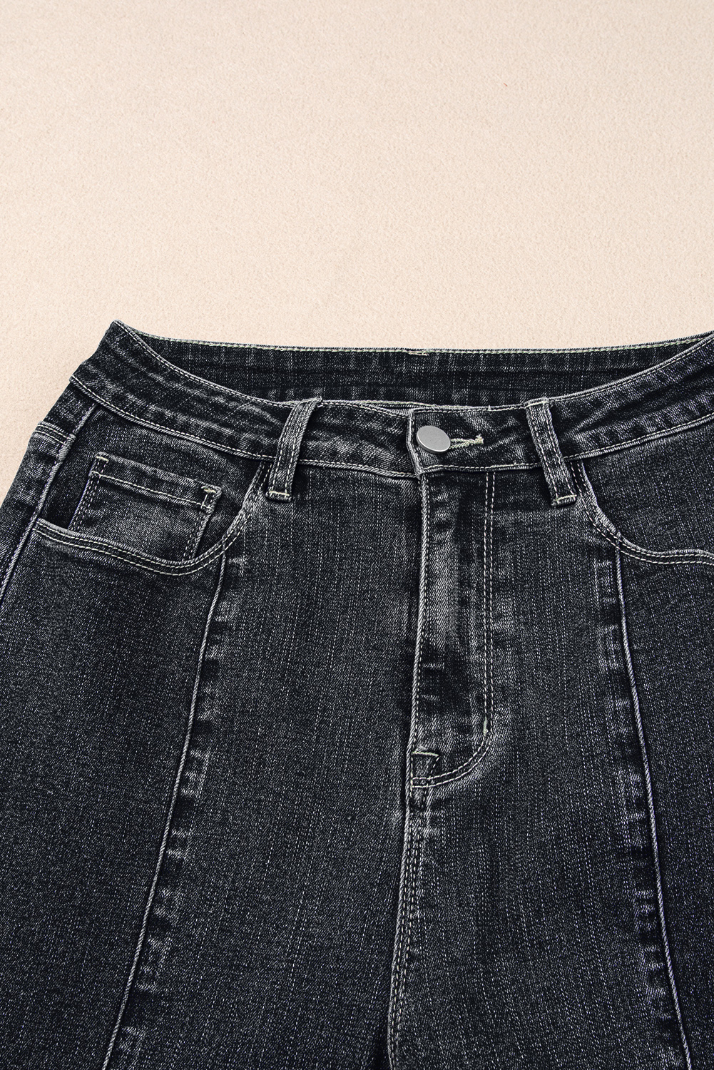 Black Plain Seam Detail Flared Bottom Ankle Length Jeans