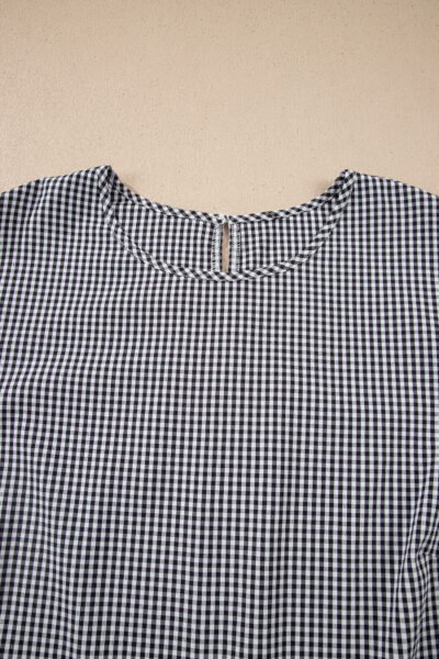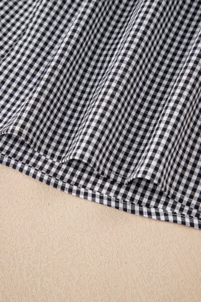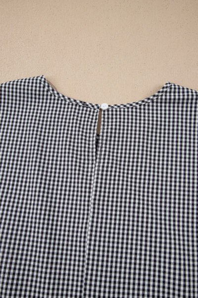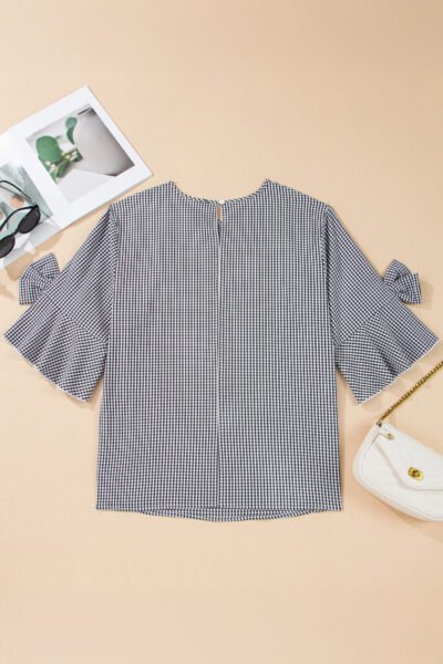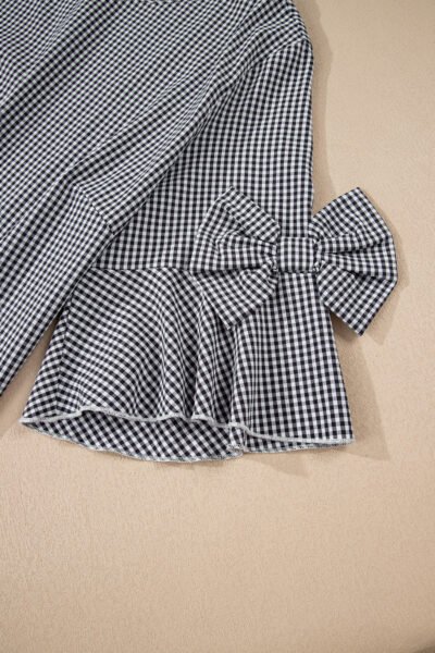 Black Plus Size Plaid Bow Decor Bell Sleeve Round Neck Jumper