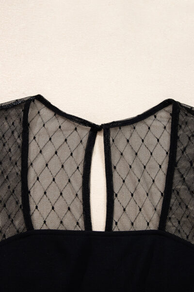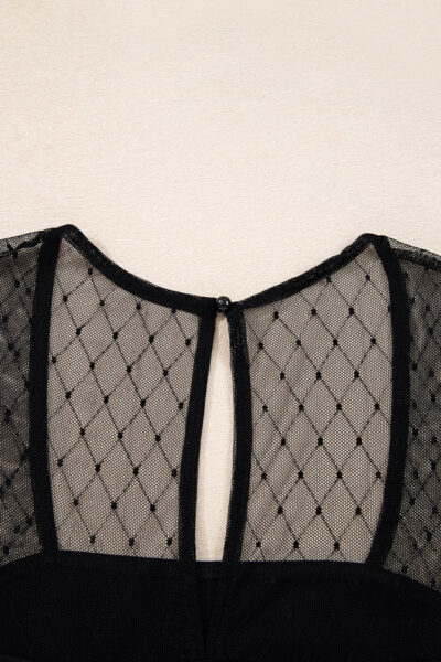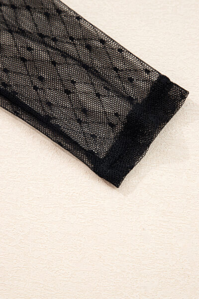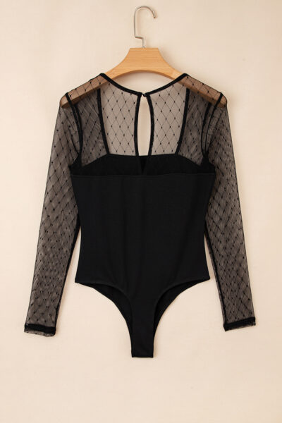 Black Polka Dot Mesh Long Sleeve Square Neck Bodysuit