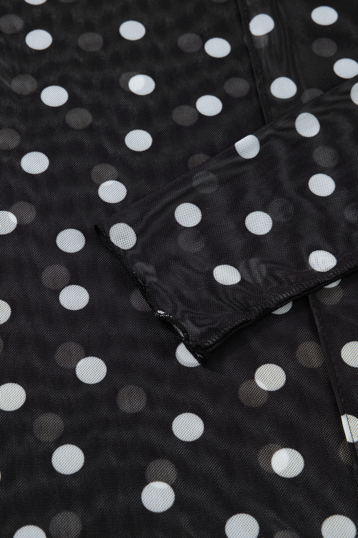 Black Polka Dot Patterned Bodycon Mock Neck Mesh Long Sleeve Top