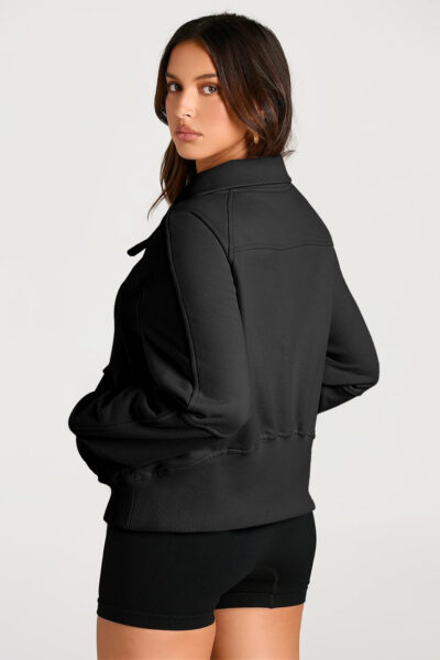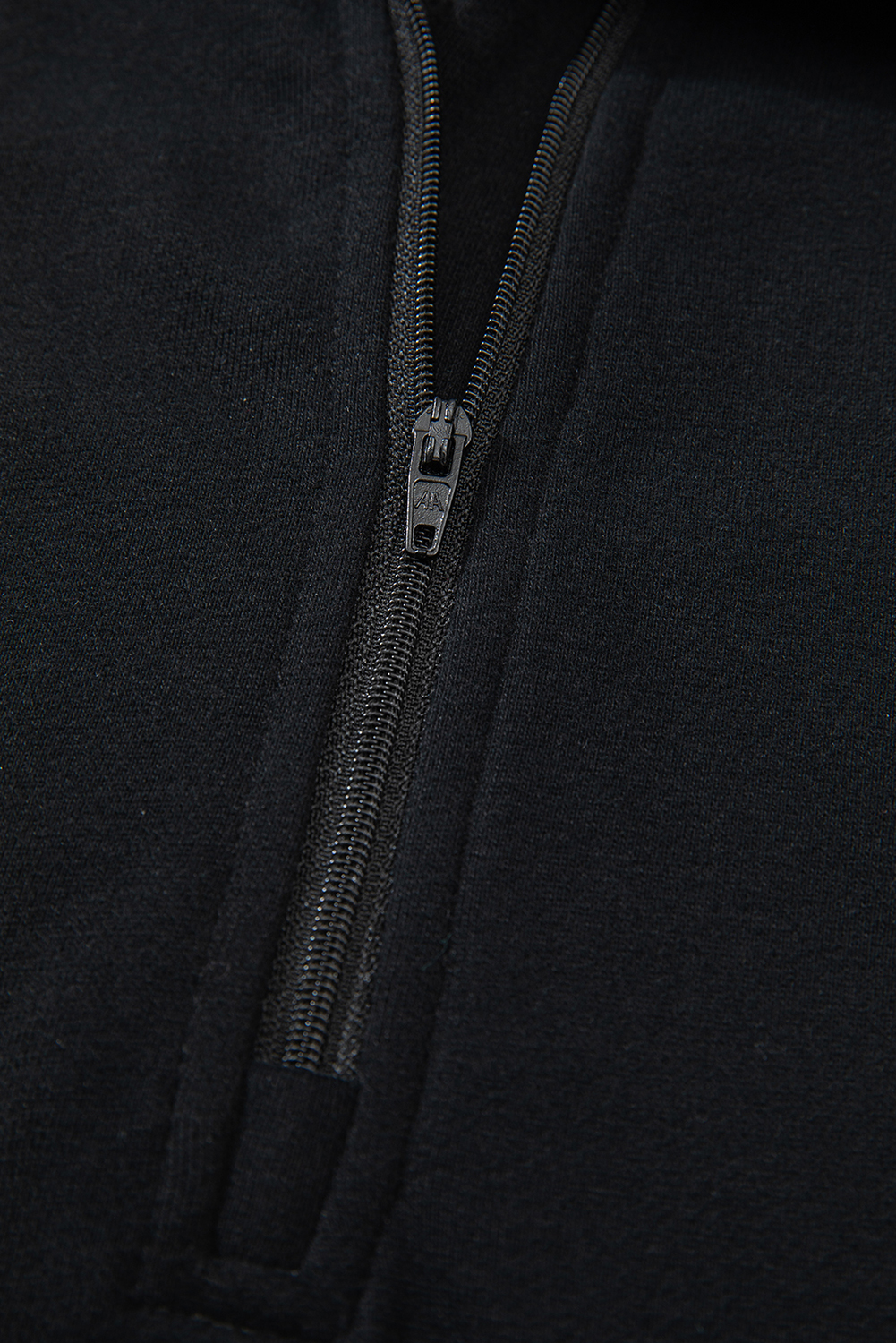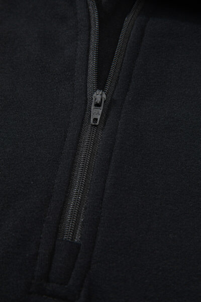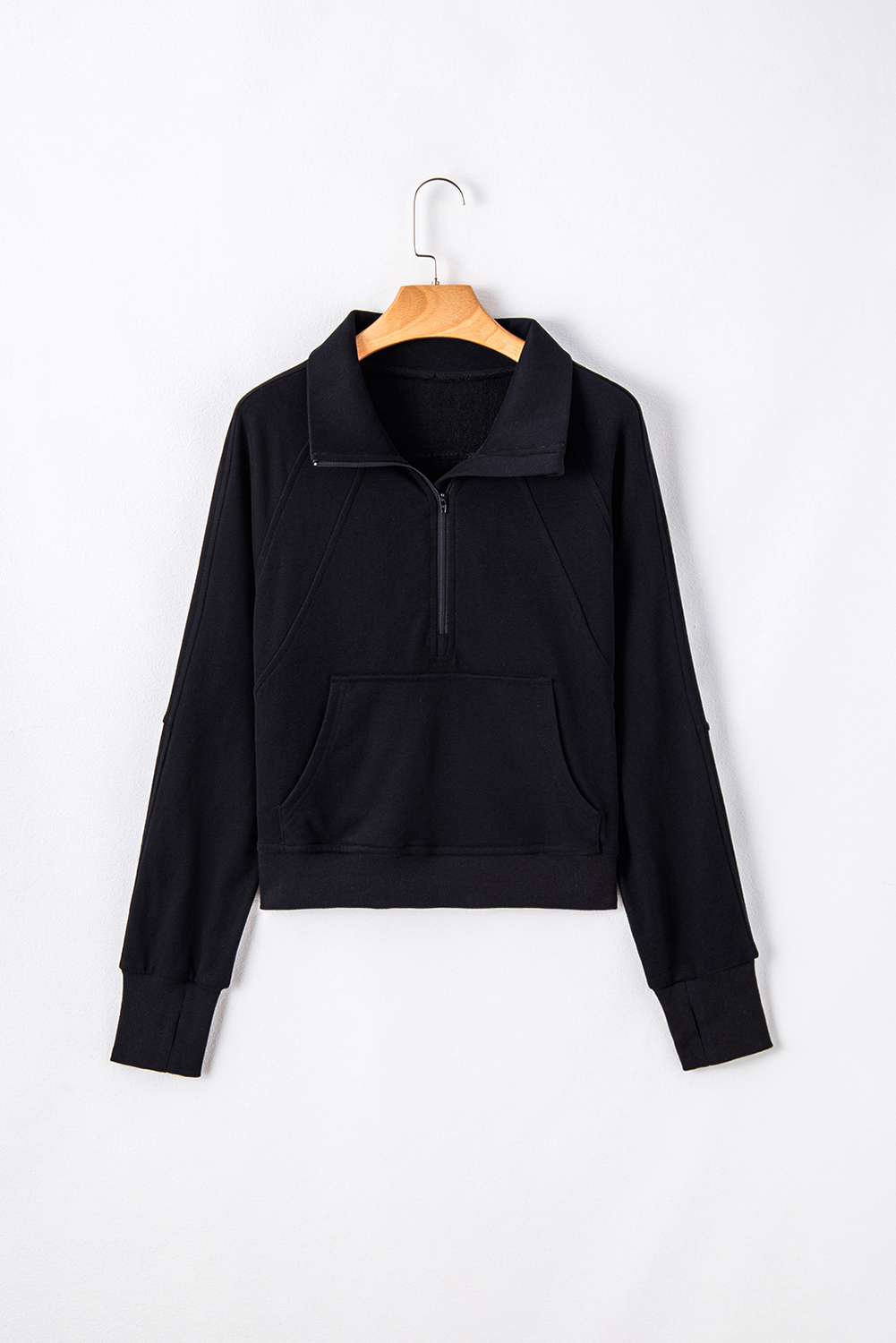Black Quarter Zip Stand Neck Kangaroo Pocket Sweatshirt