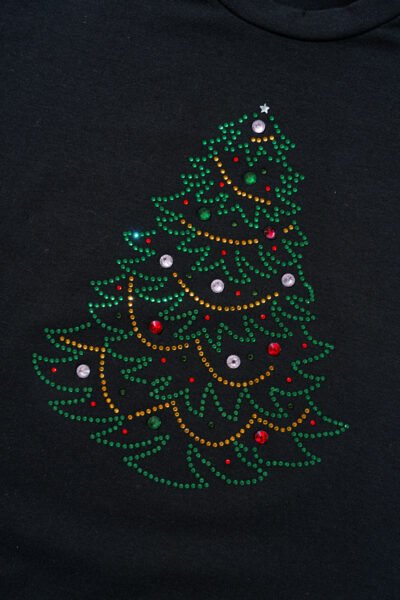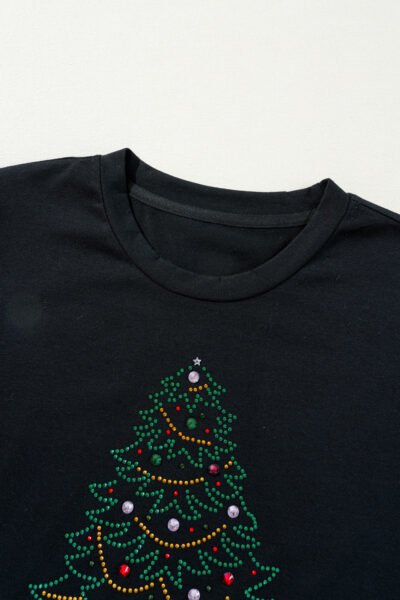 Black Rhinestone Christmas Tree Round Neck Graphic Tee