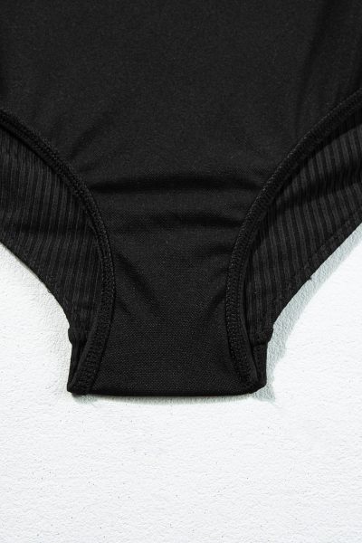 Black Ribbed Drawstring Sides Cutout One Piece Swimsuit