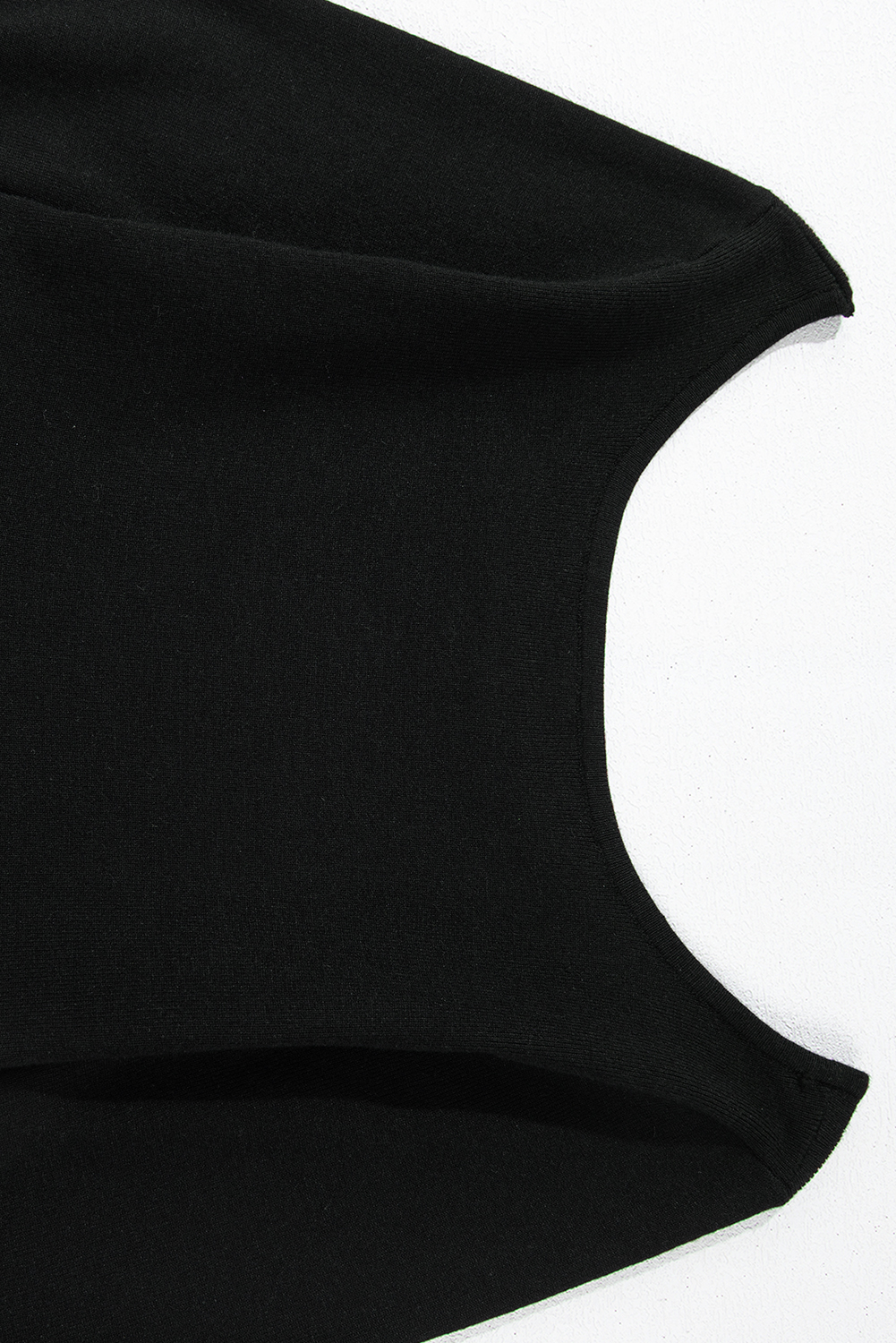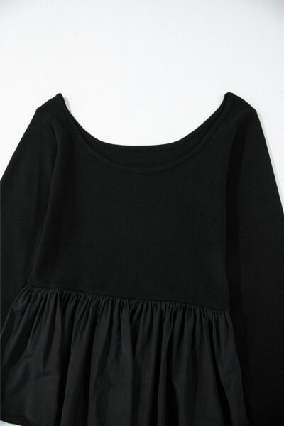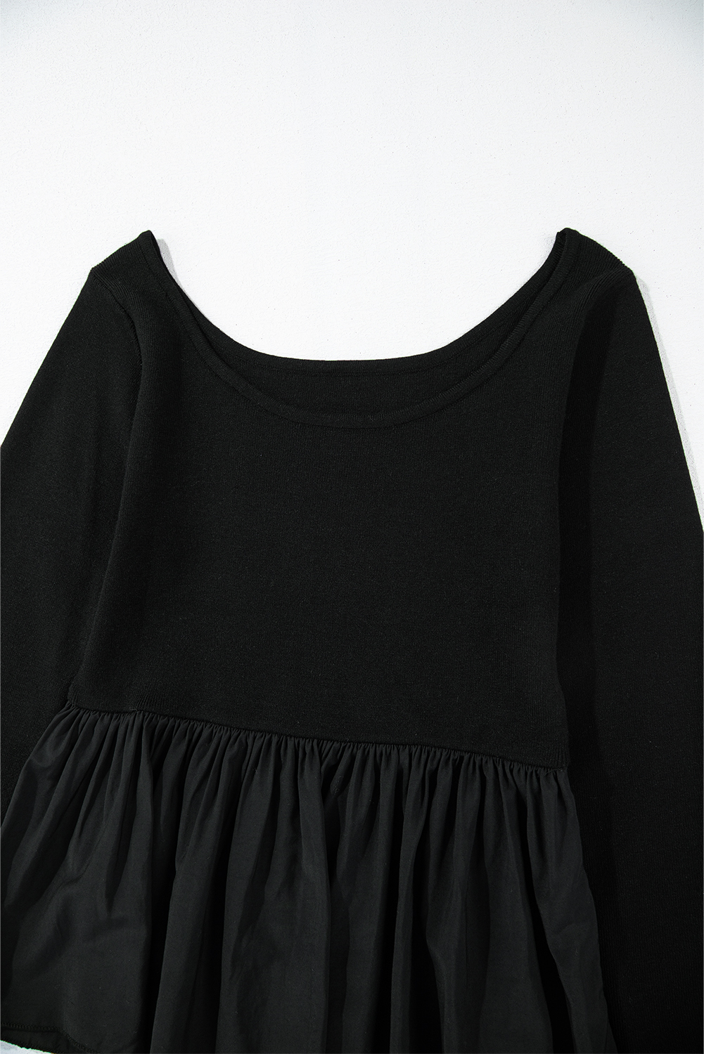 Black Ribbed Knit Long Sleeve Scoop Neck Peplum Patchwork Top