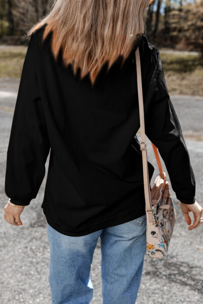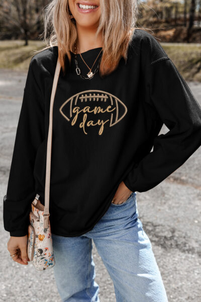 Black Rugby Game Day Embroidered Corduroy Sweatshirt