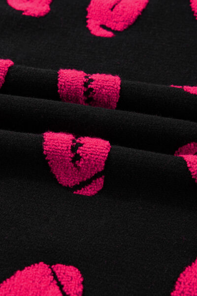 Black Rugby Print Casual Knit Short Sleeve Sweater
