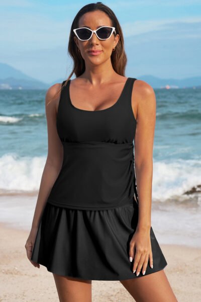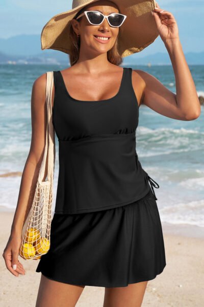 Black Scoop Neck Adjustable Tankini and Matching Skort Bathing Suit
