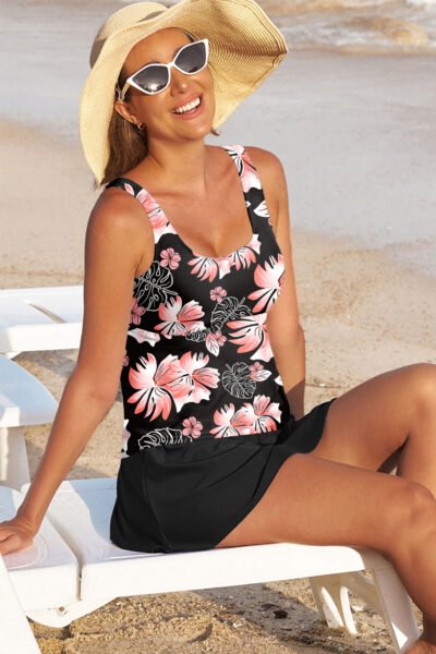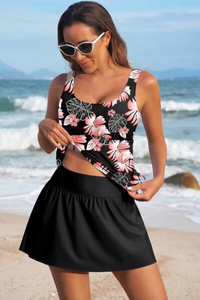 Black Scoop Neck Adjustable Tankini and Matching Skort Bathing Suit