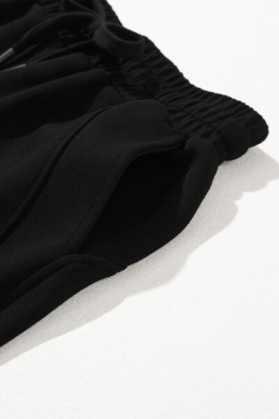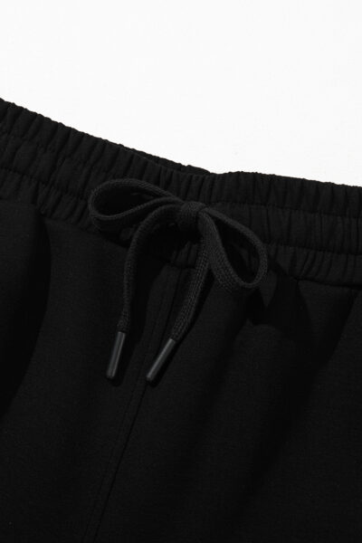 Black Scuba Drawstring Elastic Waistband Solid Color Sweatpants