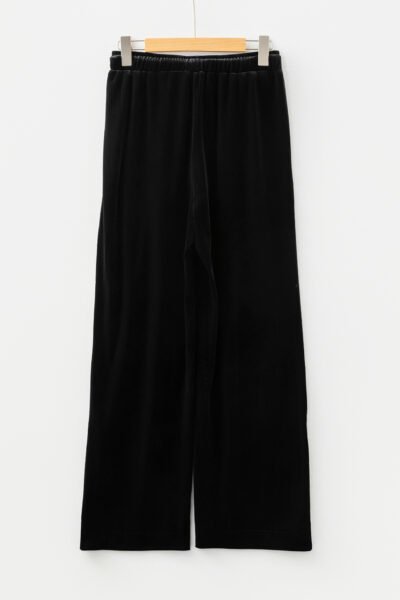 Black Shiny Velvet Drawstring High Waist Straight Leg Casual Pants