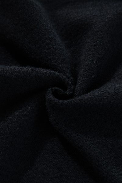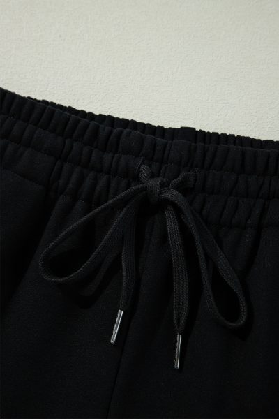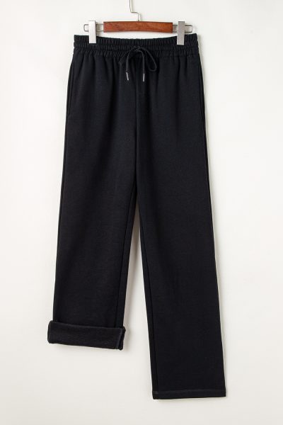 Black Solid Color Fleece Lined Drawstring Waist Casual Pants