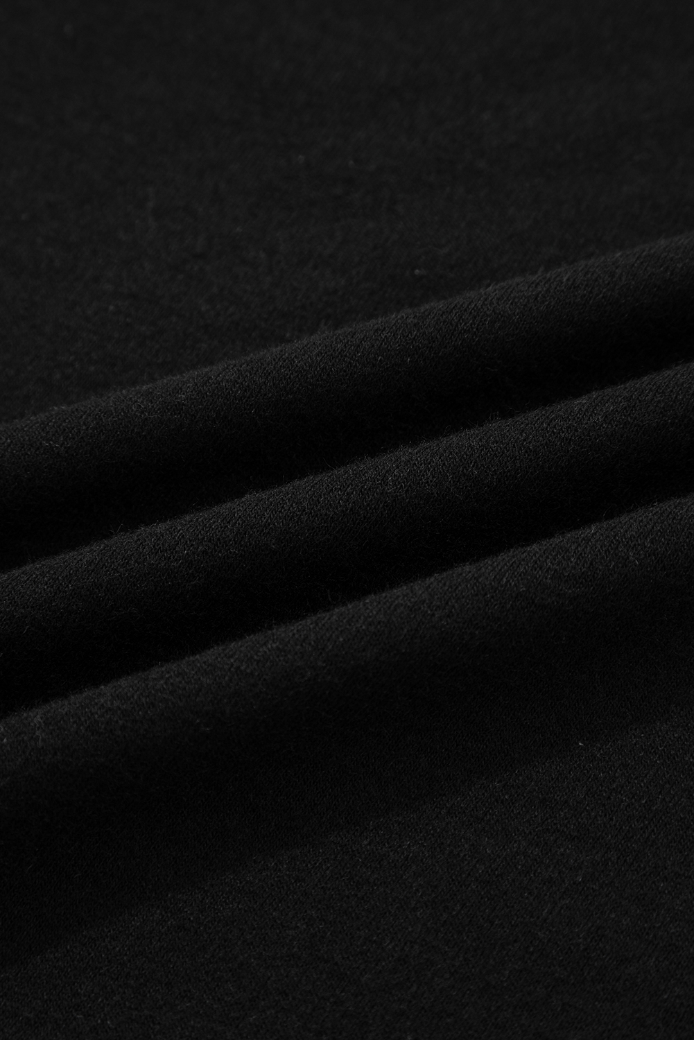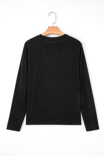 Black Solid Color Seam Detail Raglan Long Sleeve Top