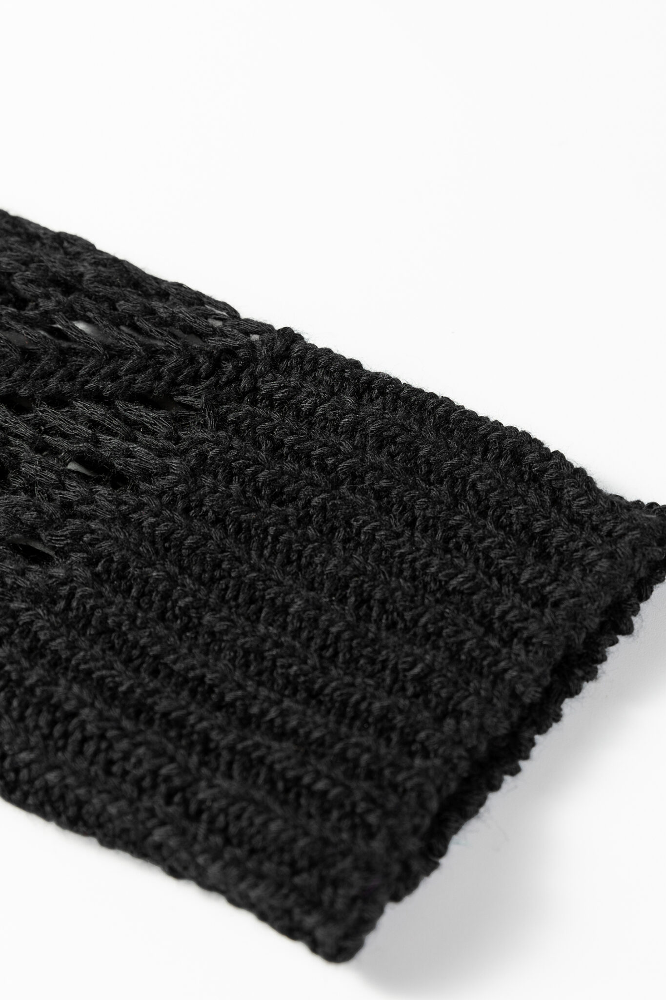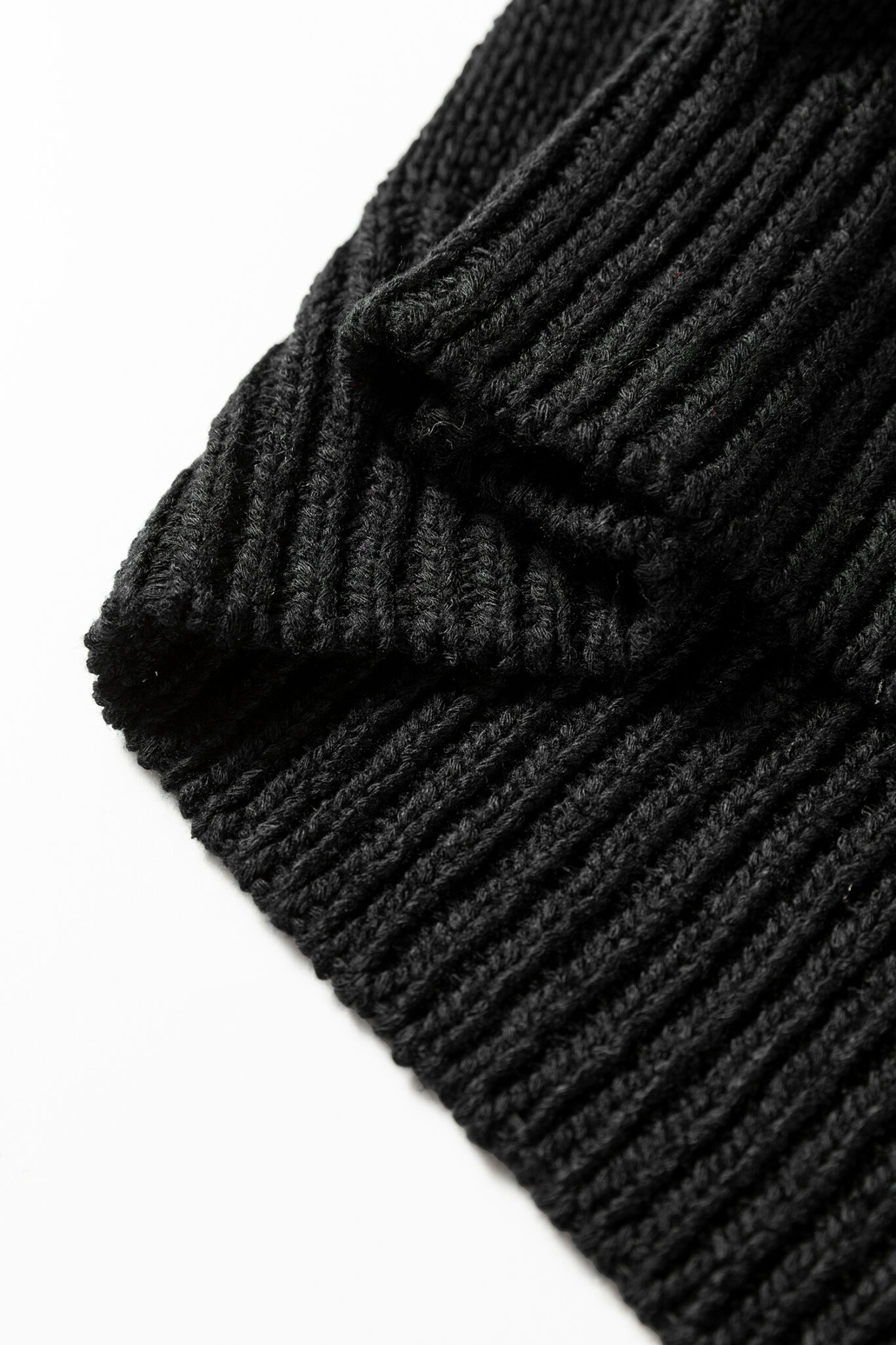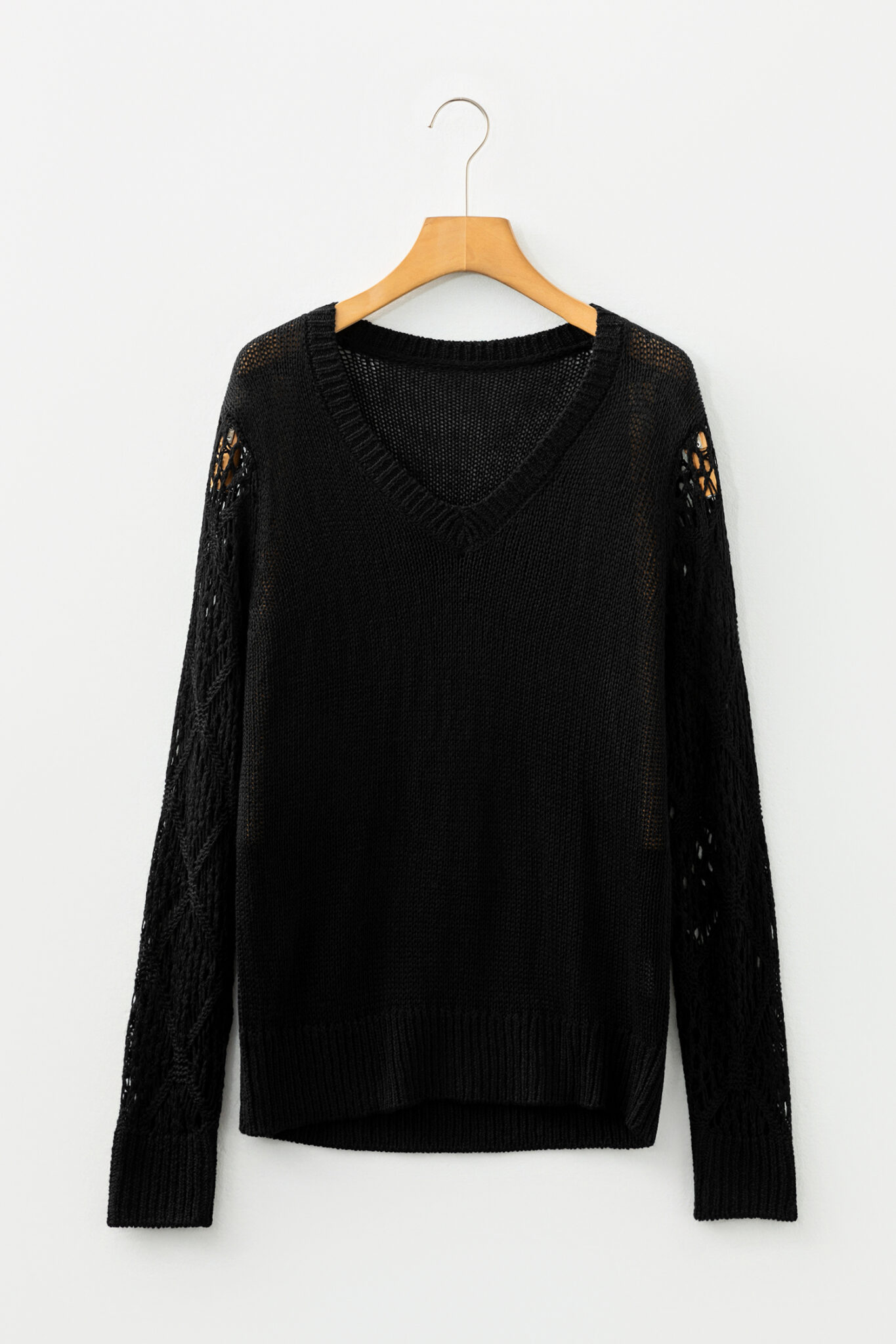 Black Solid V Neck Pointelle Knit Sleeve Patchwork Sweater