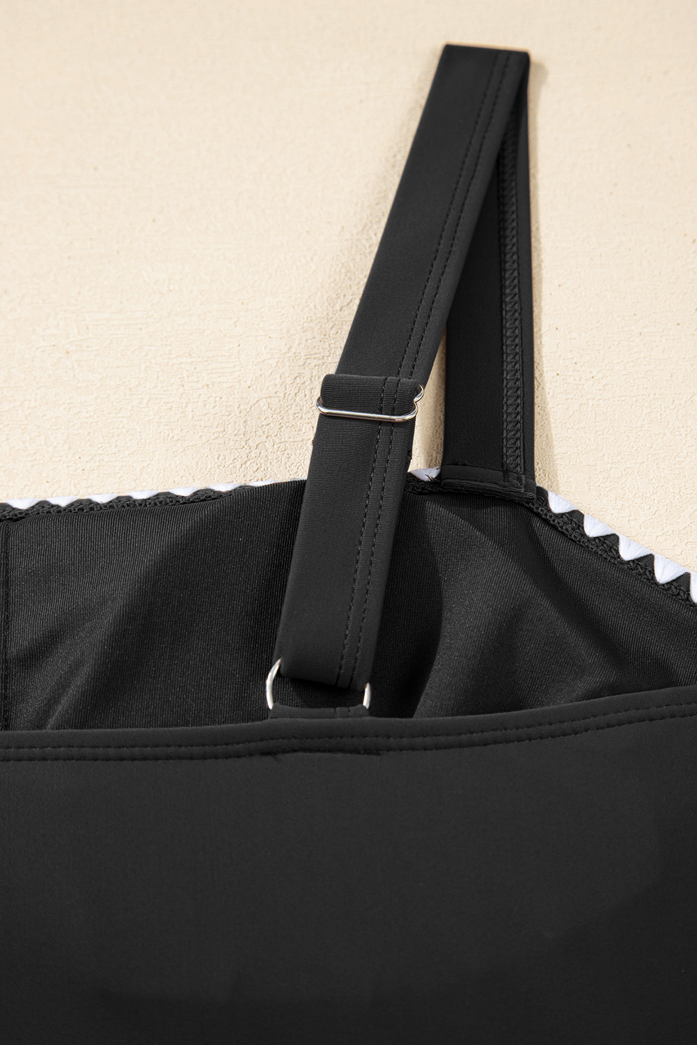 Black Spaghetti Straps Contrasted Ricrac Trim Flared Tankini 2pcs Swimsuit