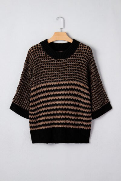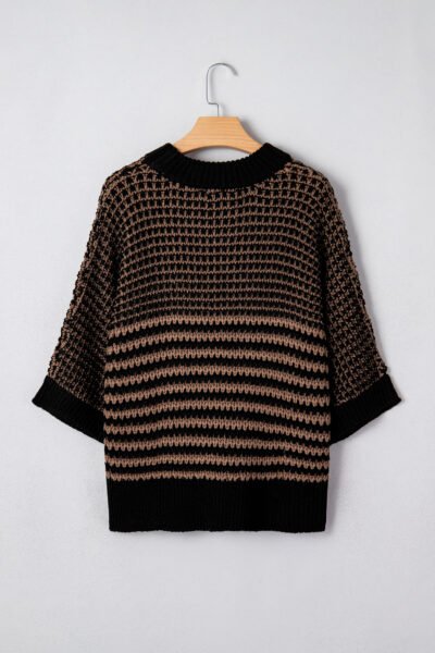 Black Stripe 3/4 Draped Sleeve Slouchy Sweater
