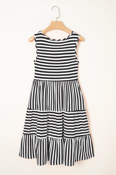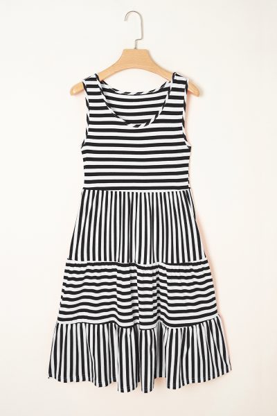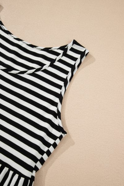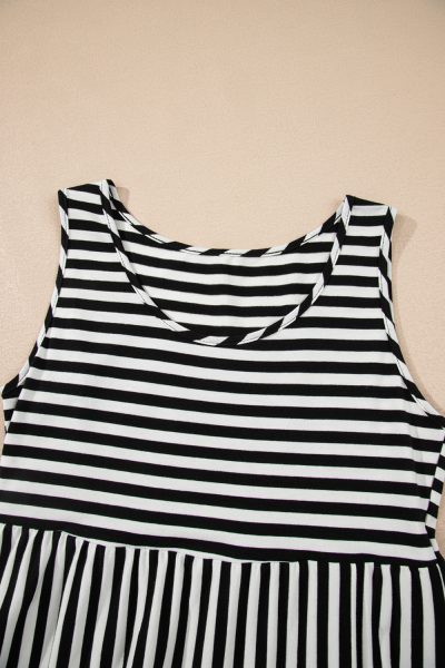 Black Stripe U Neck Sleeveless Loose Fit Mini Dress