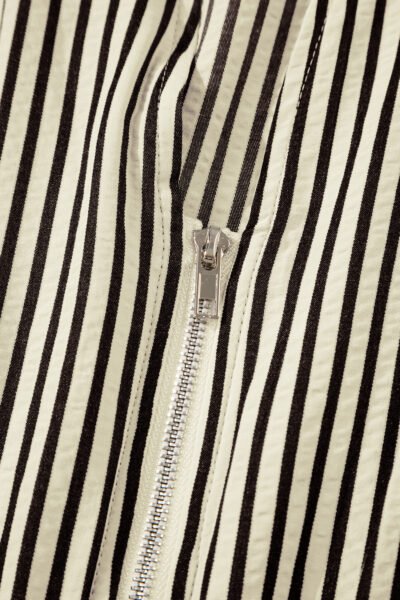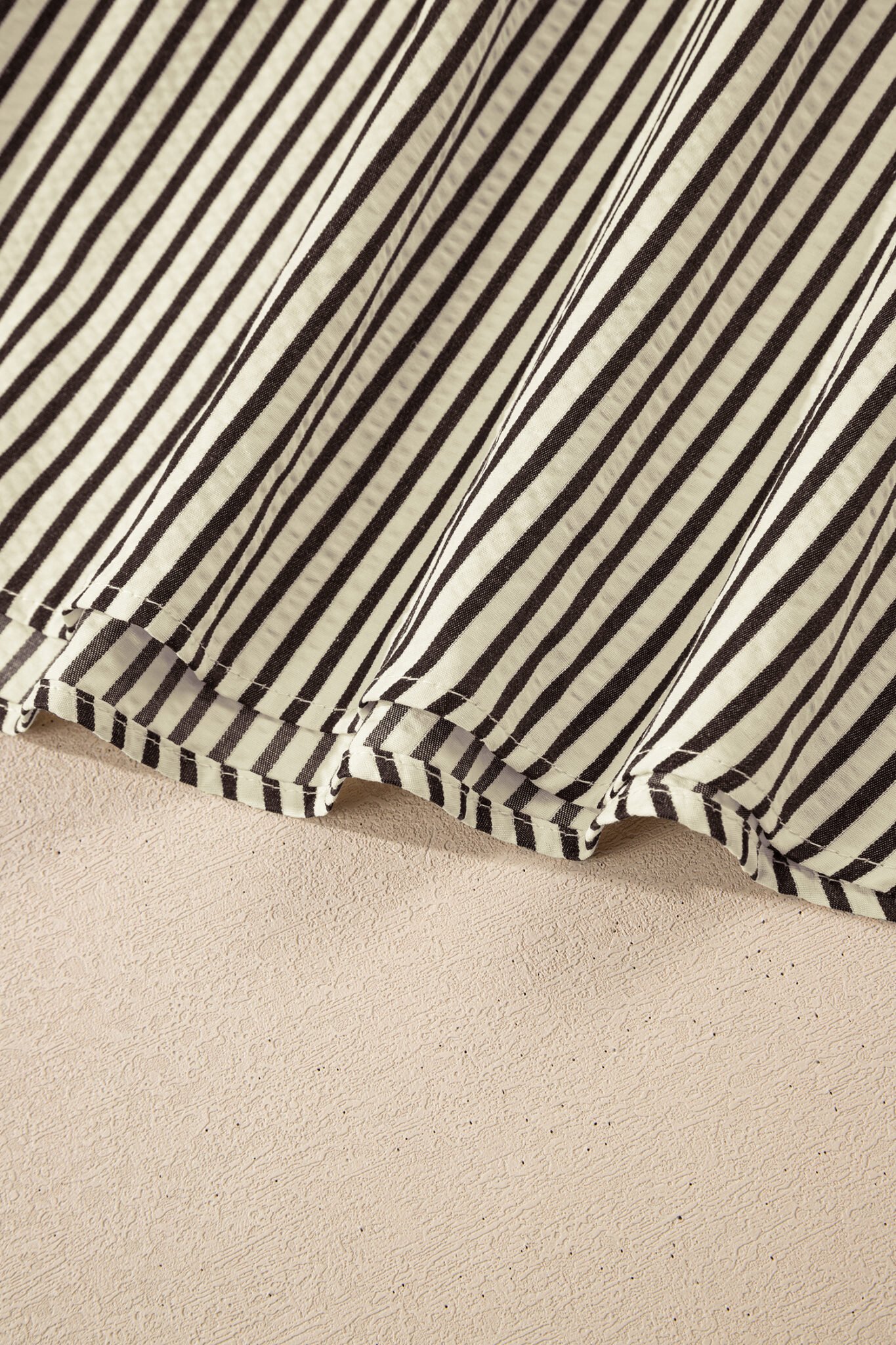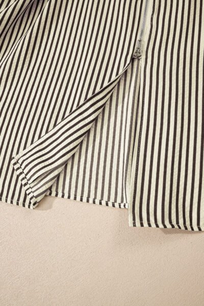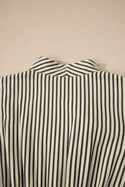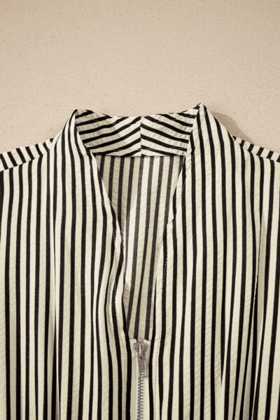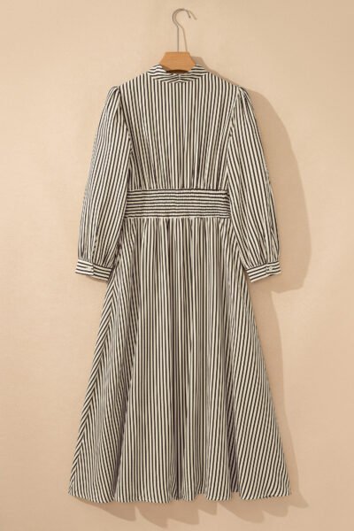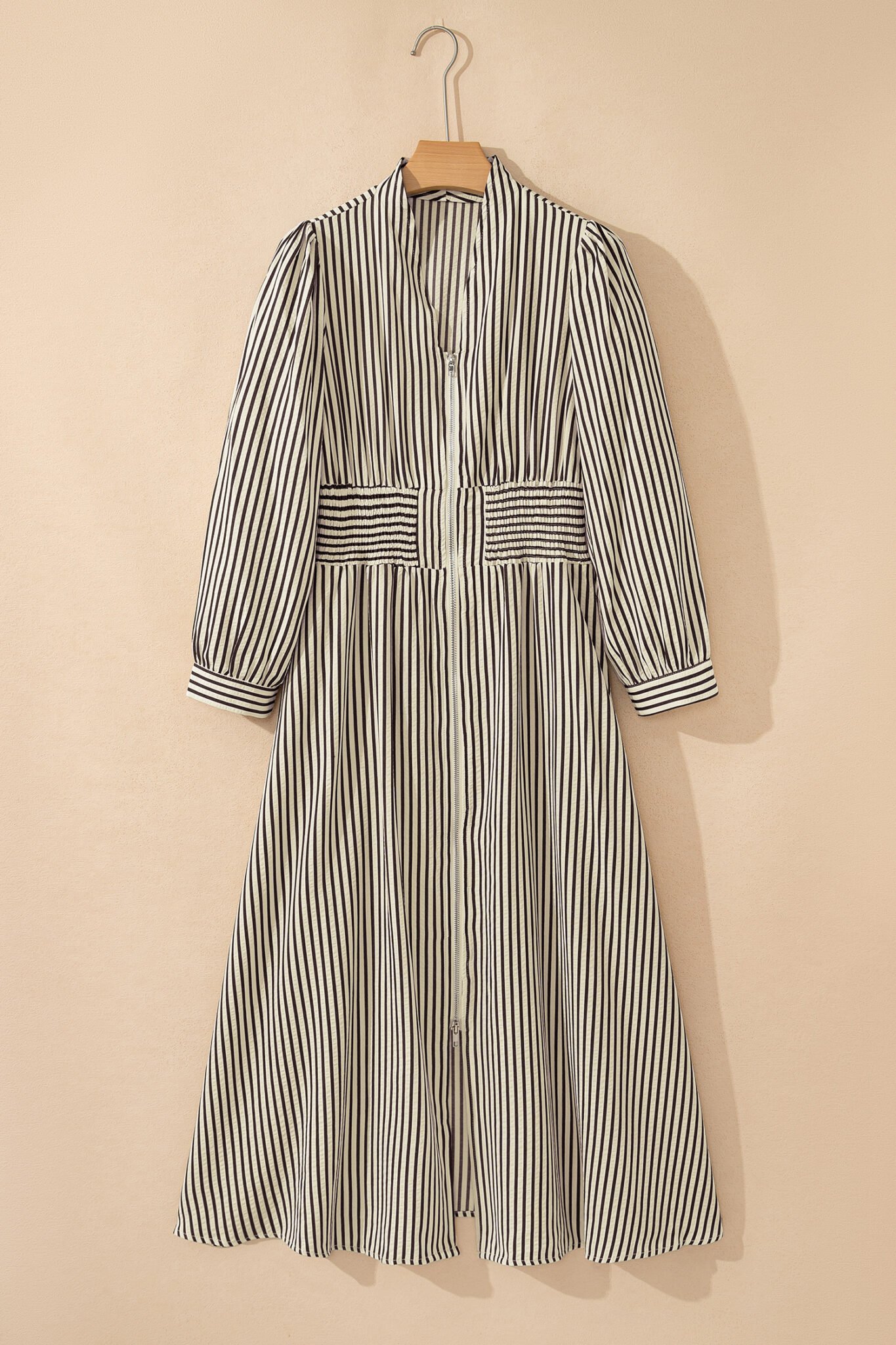 Black Stripe V Neck Zip Front Cinched High Waist Midi Dress