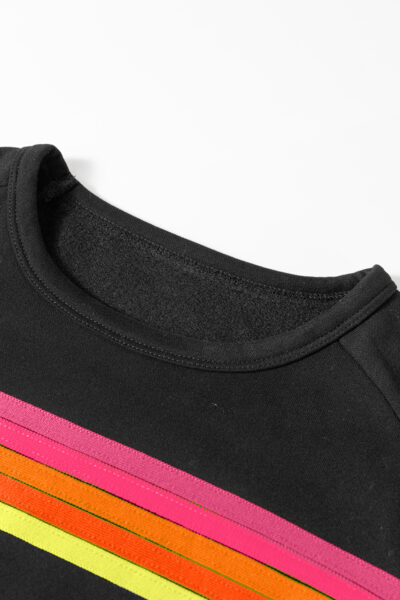 Black Striped Accent Pullover and Shorts Two Piece Casual Set