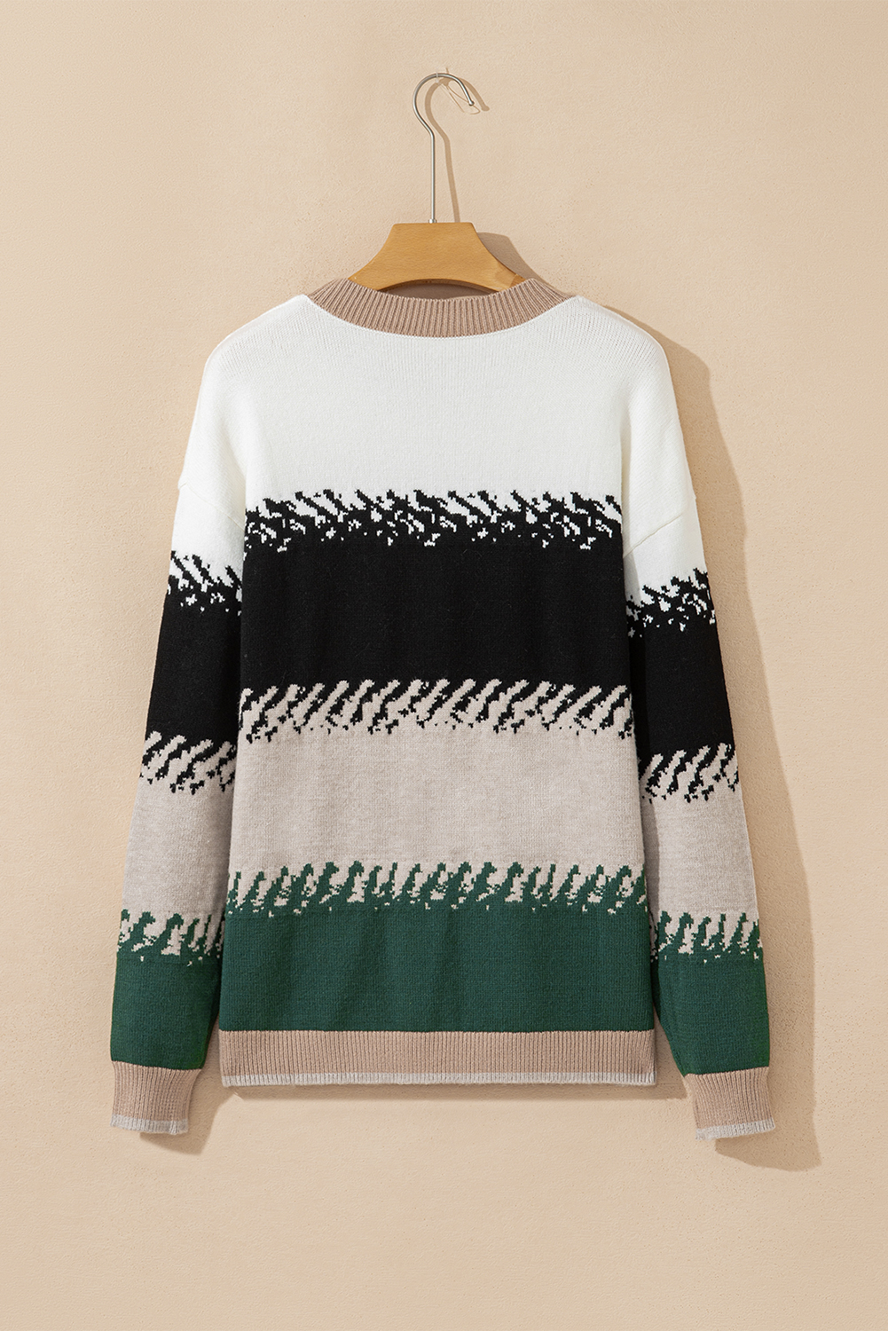 Black Stylish Color Block Pattern Drop Shoulder Sweater