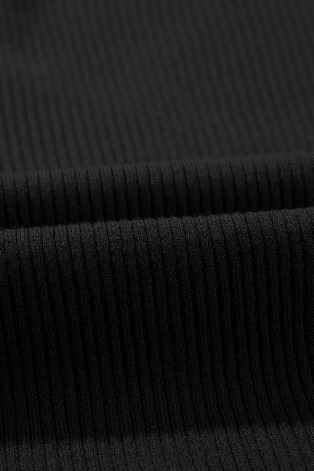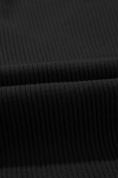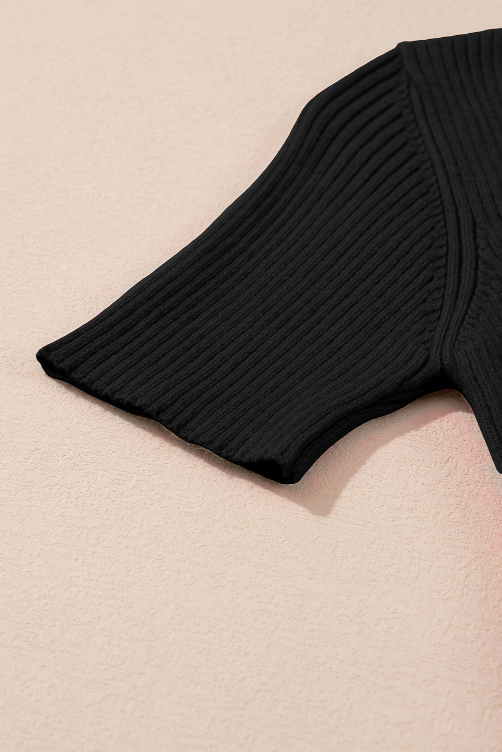 Black V Neck Ribbed Knit Lightweight Short Sleeve Sweater