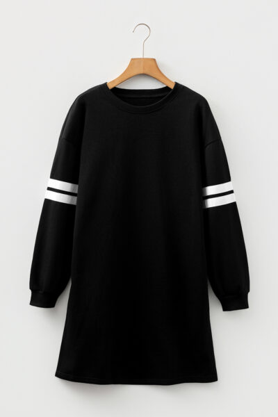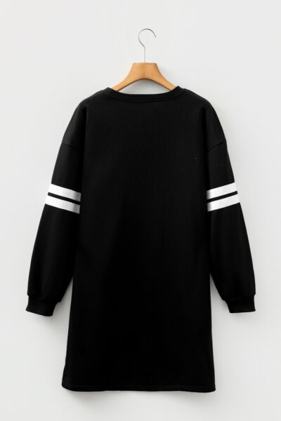 Black Varsity Contrast Banded Sleeve Shift Sweatshirt Dress
