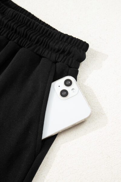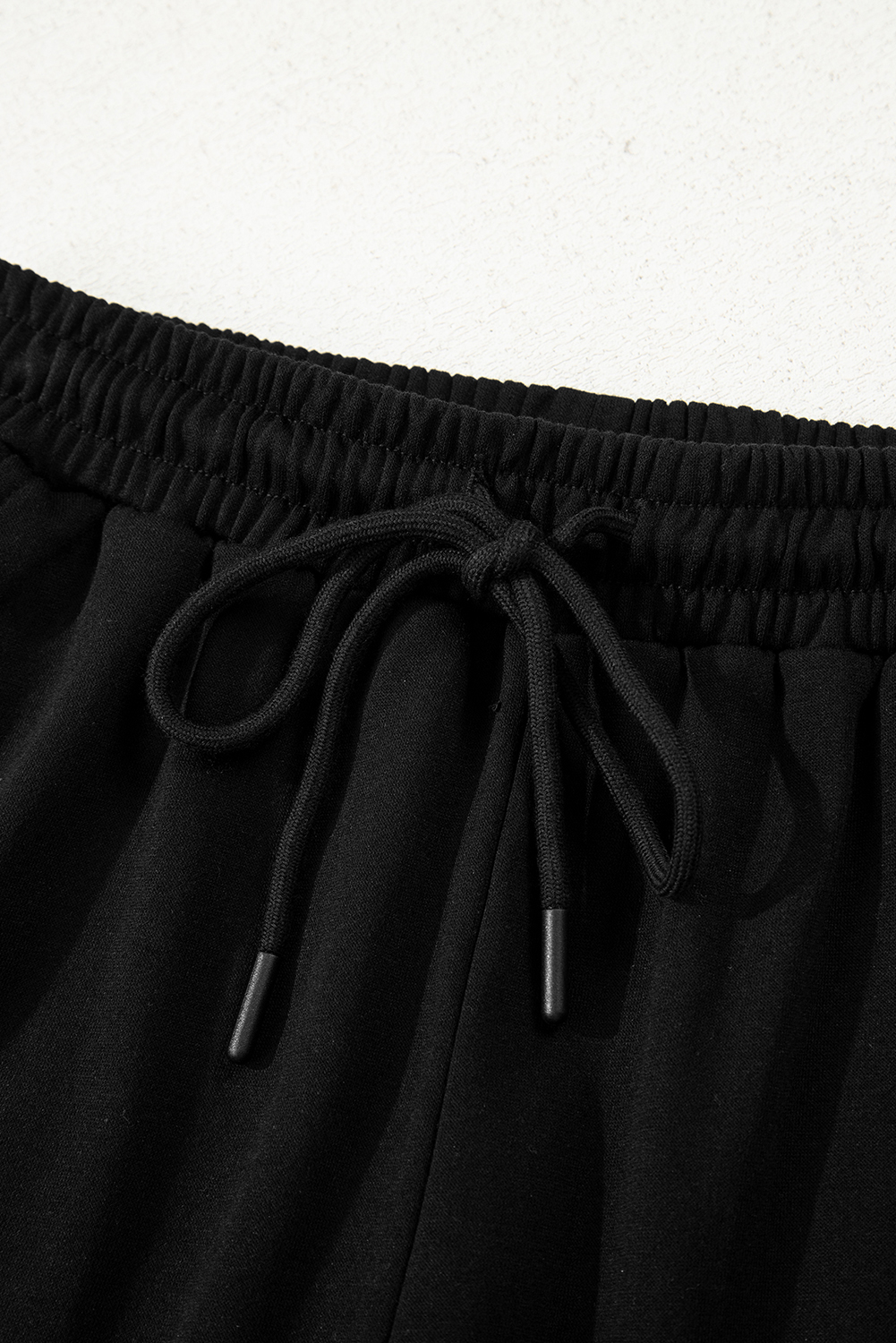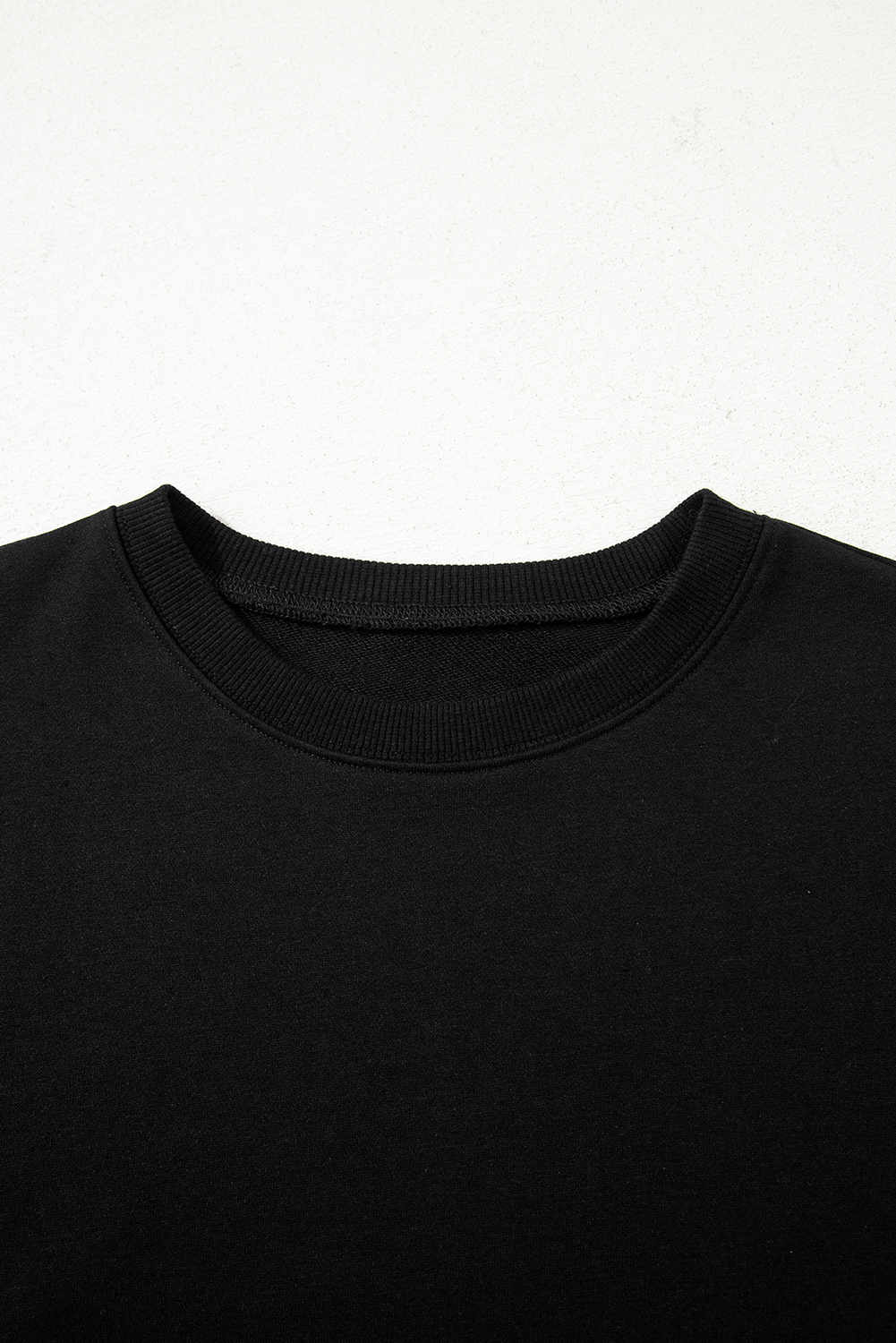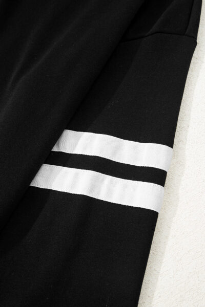 Black Varsity Striped Sleeve Drop Shoulder Sweatshirt and Short Set