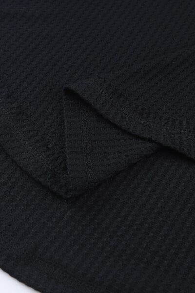 Black Waffle Knit Drop Shoulder Loose Top