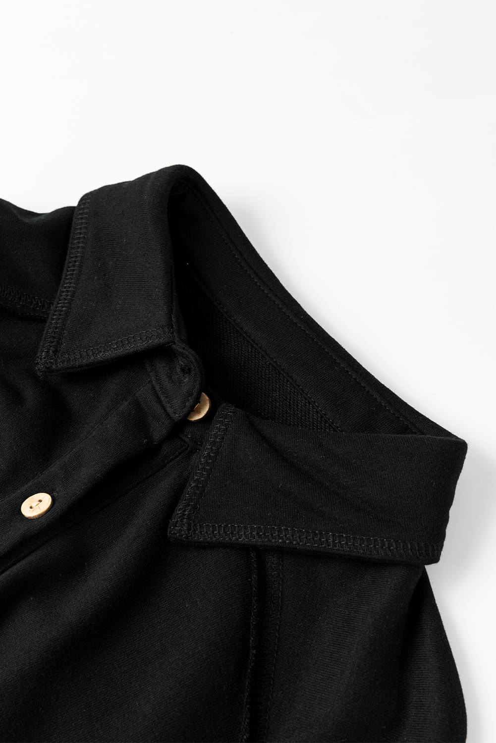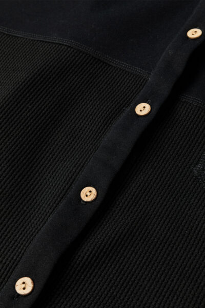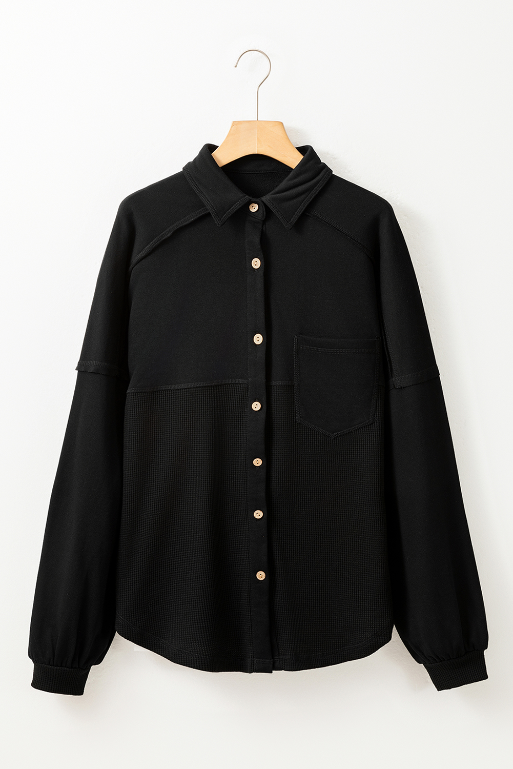 Black Waffle Knit Patchwork Exposed Seam Loose Shacket
