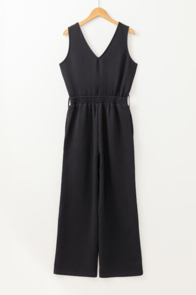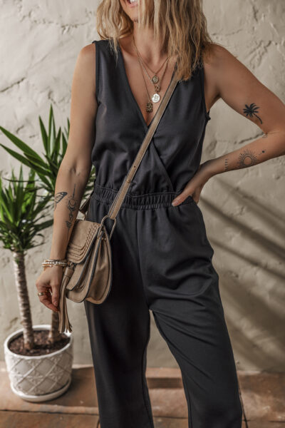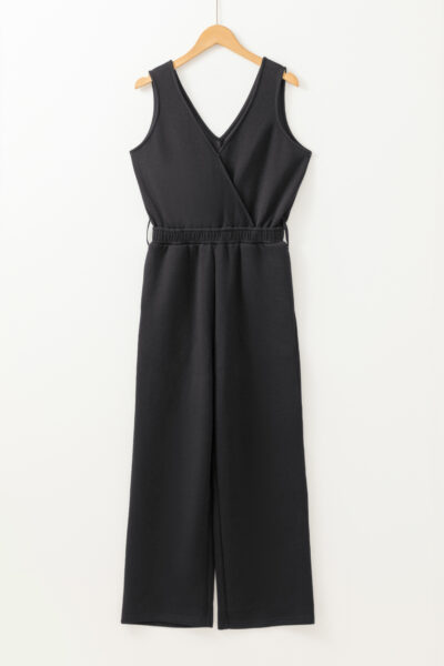Black Wrap V Neck Sleeveless High Waist Jumpsuit