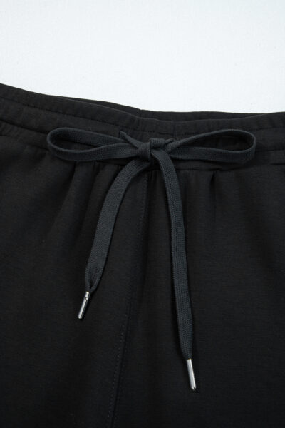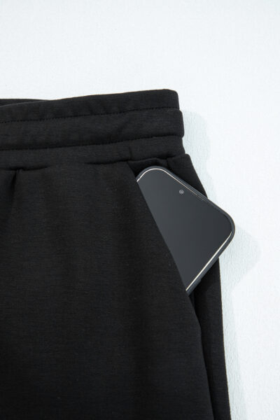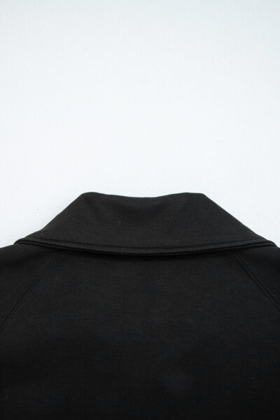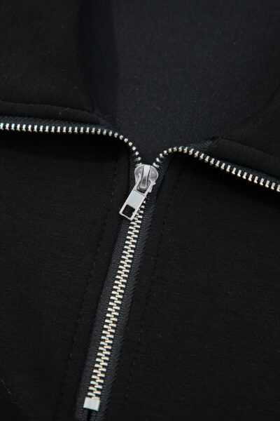 Black Zip Collar Long Sleeve Top Drawstring Pants Set